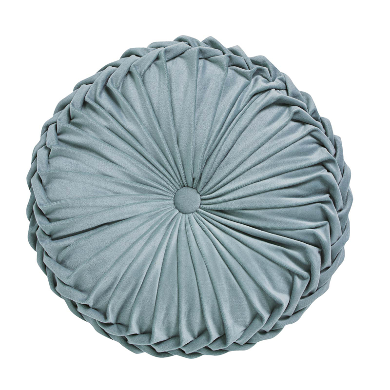 Στρογγυλό διακοσμητικό μαξιλάρι με κουμπί σε γαλάζιο χρώμα από την εταιρεία Das Home. Το ύφασμα είναι βελουτέ από 100% polyester. Συνδυάστε το με τα άλλα σχήματα ή χρώματα της συλλογής για ένα ολοκληρωμένο αποτέλεσμα.