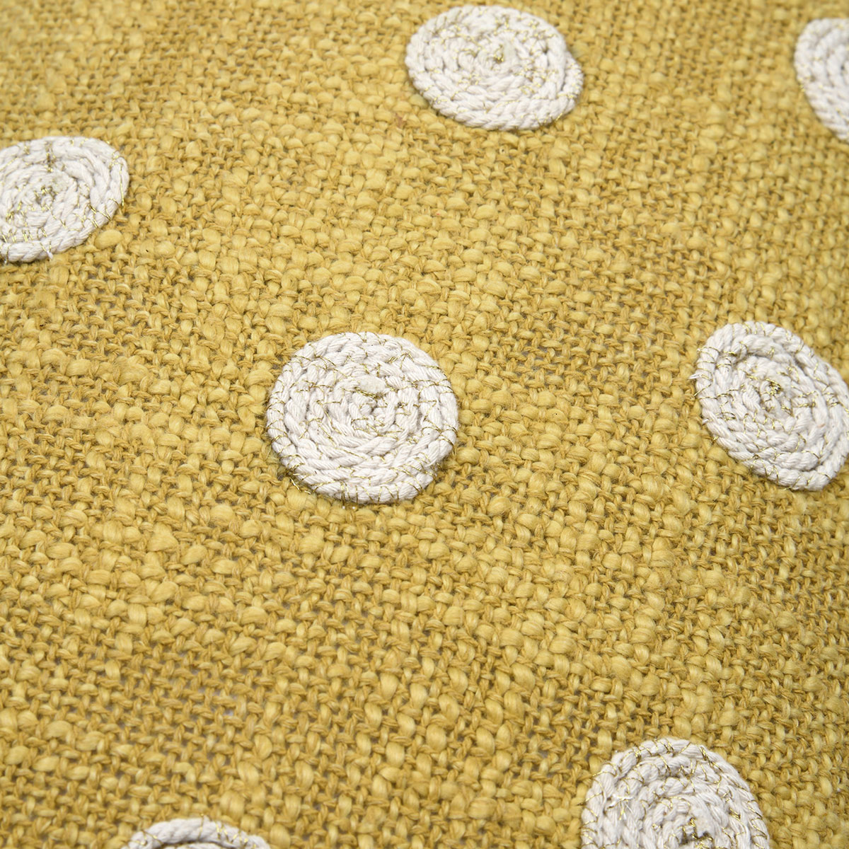Διακοσμητικό μαξιλάρι στο χρώμα της ώχρας με εκρού λεπτομέρειες και πουά σχέδιο, ενώ από την άλλη σε ώχρα χρώμα. Το εξωτερικό ύφασμα είναι από 45% polyester 55% βαμβάκι, ενώ η γέμιση είναι πολυεστερική βάτα. Ανανεώστε εύκολα τον χώρο του σπιτιού σας, δίνοντας μια φρέσκια και ανάλαφρη διάθεση.