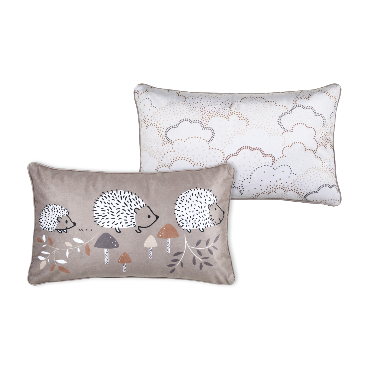 Διακοσμητικό μαξιλάρι για το παιδικό ή βρεφικό δωμάτιο. Είναι διπλής όψης καθώς η μία πλευρά είναι μπεζ με σχέδιο ζωάκια και η άλλη έχει λευκό φόντο με μοντέρνο σχέδιο σε μπεζ-μπλε αποχρώσεις. Το ύφασμα της μαξιλαροθήκης έχει σύνθεση από 100% polyester και η γέμιση είναι από πολυεστερική βάτα. Διαθέτει φερμουάρ για να αφαιρείται η γέμιση και να πλένεται. Συνδυάστε το με τα υπόλοιπα είδη της σειράς για ένα ολοκληρωμένο αποτέλεσμα.
