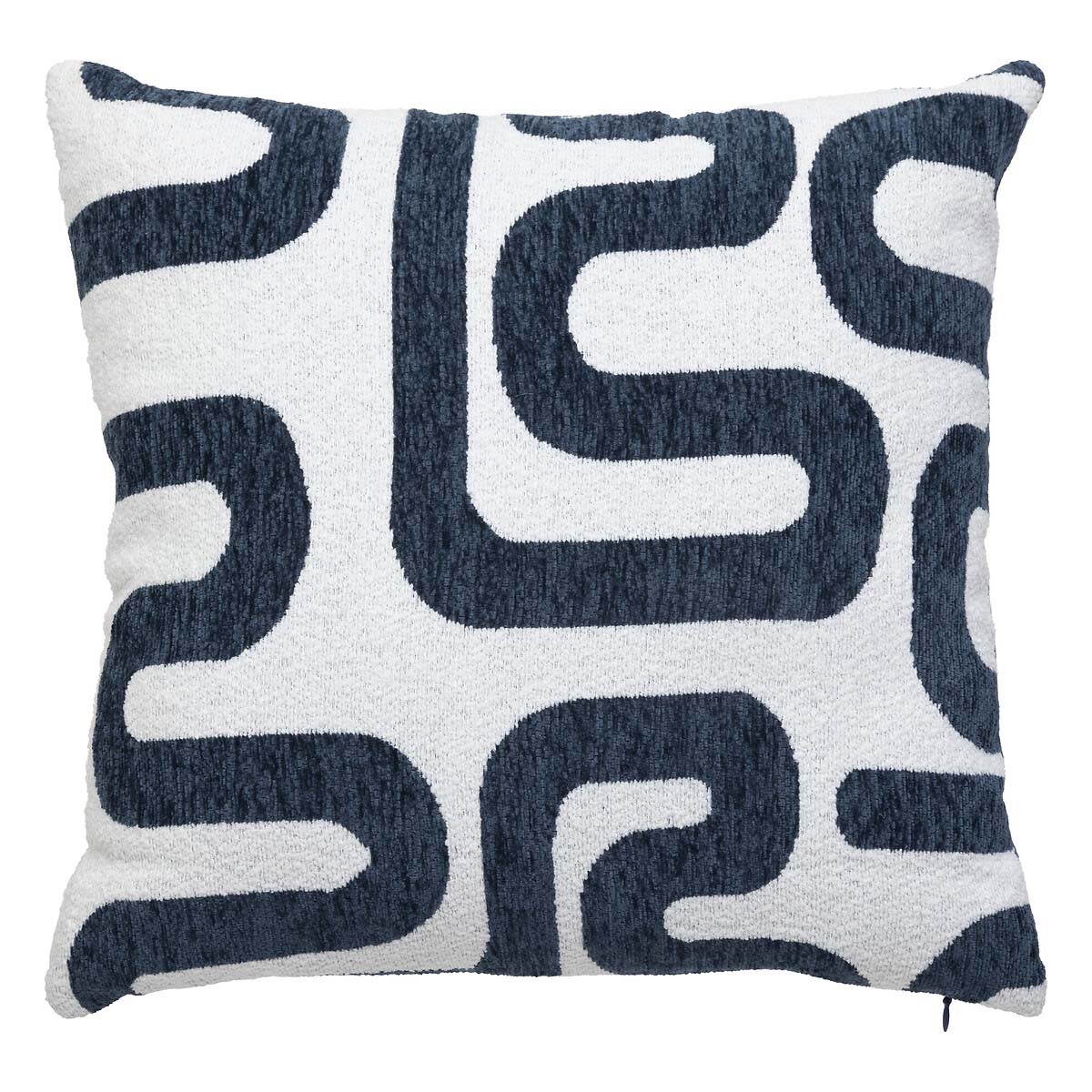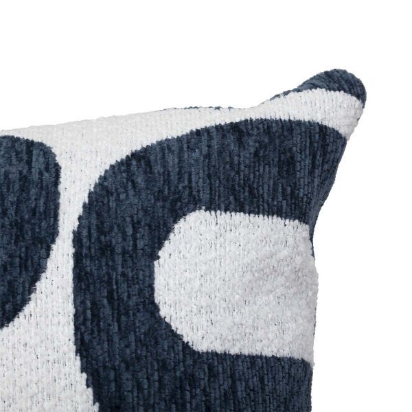 Διακοσμητικό μαξιλάρι 2 όψεων με μοντέρνο σχέδιο. Η μια πλευρά είναι μονόχρωμη μπλε, ενώ η άλλη είναι λευκή με μπλε σχέδιο. Το εξωτερικό ύφασμα είναι chenille από 100% polyester που το καθιστά ιδιαίτερα μαλακό και ζεστό, ενώ η γέμιση είναι πολυεστερική βάτα. Διαθέτει φερμουάρ για να αφαιρείται η γέμιση και να πλένεται. Ιδανικό για τους χειμερινούς μήνες του χρόνου.