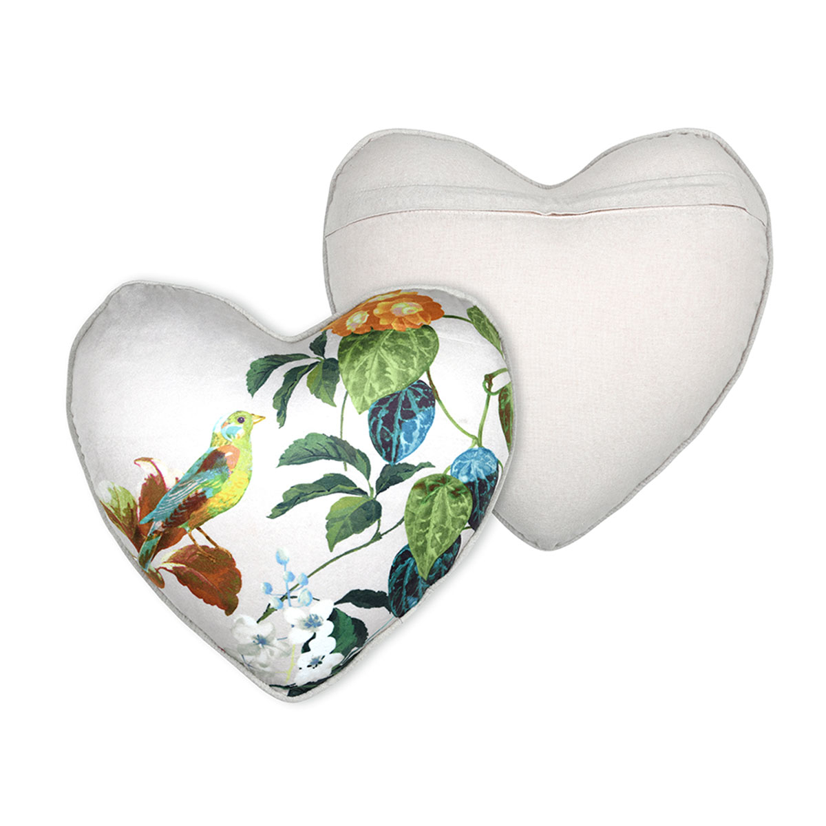 Διακοσμητικό μαξιλάρι καρδιά σε λευκό φόντο, με πολύχρωμες λεπτομέρειες και φλοράλ σχέδιο, ενώ από την άλλη σε λευκό χρώμα. Το εξωτερικό ύφασμα είναι από 73% polyester 27% βαμβάκι, ενώ η γέμιση είναι πολυεστερική βάτα. Διαθέτει φερμουάρ. Ανανεώστε εύκολα τον χώρο του σπιτιού σας, δίνοντας μια φρέσκια και ανάλαφρη διάθεση.