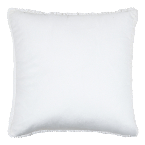 Διακοσμητικό μαξιλάρι διπλής όψης σε λευκό χρώμα με ανάγλυφη επιφάνεια από την μια μεριά και βελουτέ από την άλλη. Το εξωτερικό ύφασμα είναι fleece από 100% Polyester ενώ η γέμιση είναι πολυεστερική βάτα. Ανανεώστε εύκολα οποιονδήποτε χώρο του σπιτιού σας, δίνοντας μια φρέσκια και ανάλαφρη διάθεση.
