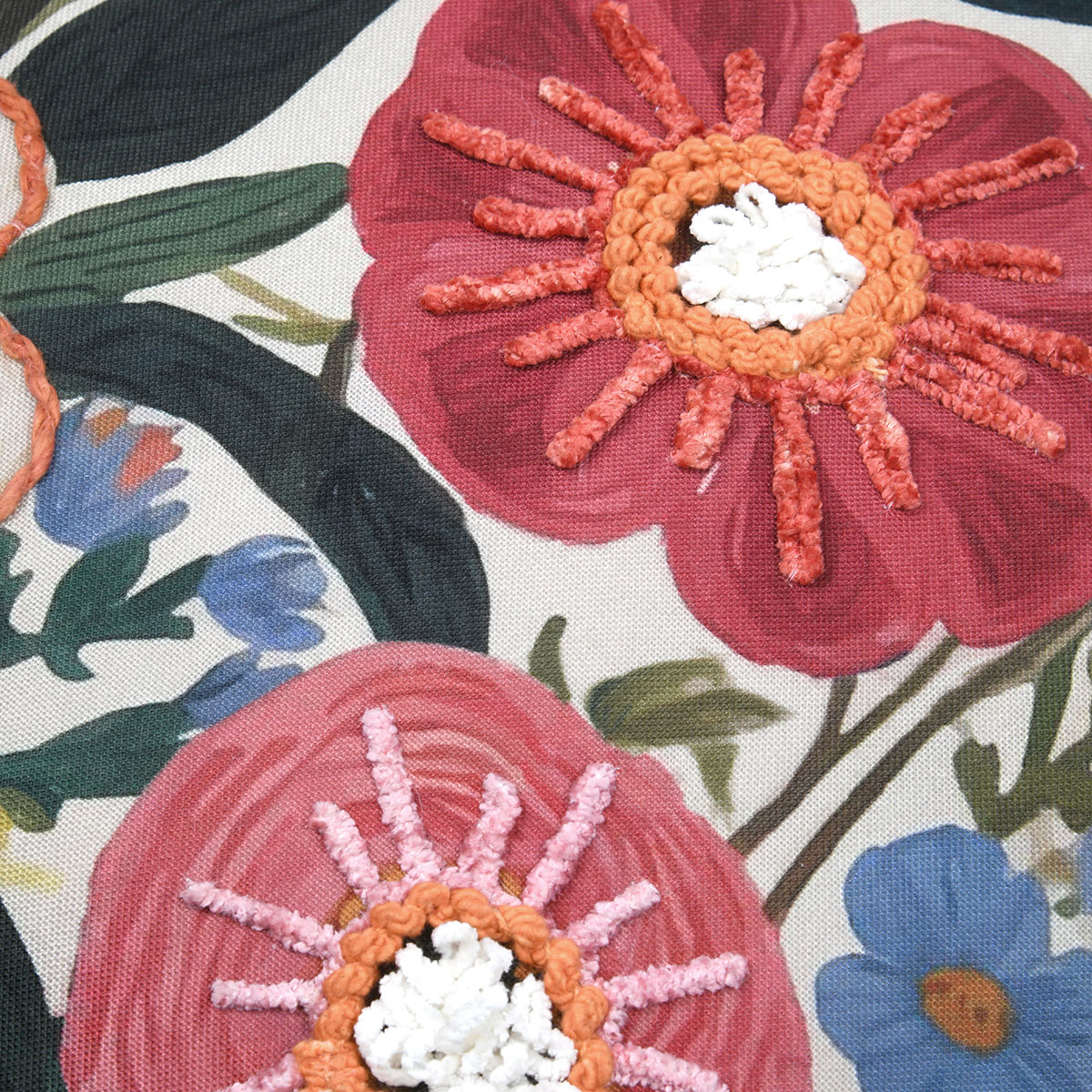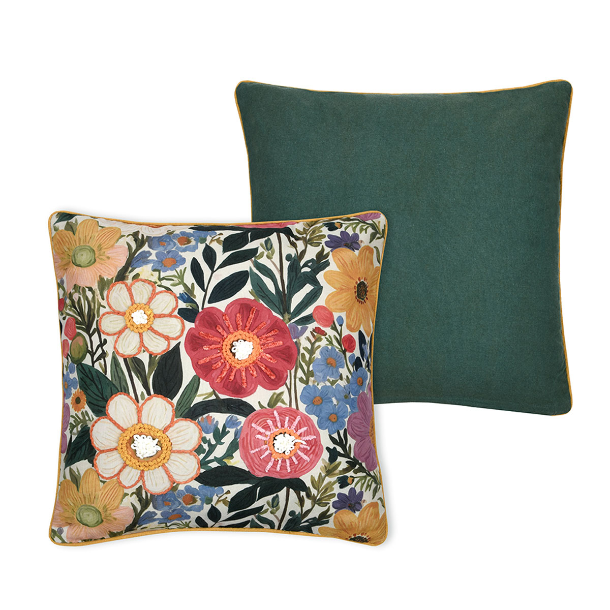 Διακοσμητικό μαξιλάρι με ανάγλυφες φλοράλ λεπτομέρειες και πολύχρωμες αποχρώσεις από την μια πλευρά, ενώ από την άλλη σε πράσινο χρώμα. Το εξωτερικό ύφασμα είναι από 55% βαμβάκι 45% polyester, ενώ η γέμιση είναι πολυεστερική βάτα. Ανανεώστε εύκολα τον χώρο του σπιτιού σας, δίνοντας μια φρέσκια και ανάλαφρη διάθεση.