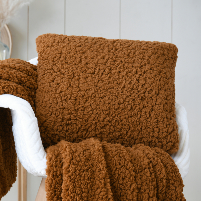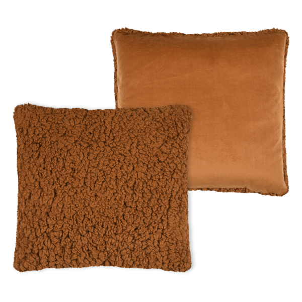 Διακοσμητικό μαξιλάρι διπλής όψης σε καφέ χρώμα με ανάγλυφη επιφάνεια από την μια μεριά και βελουτέ από την άλλη. Είναι γούνινο κατασκευασμένο από 100% polyester και έχει γέμιση από πολυεστερική βάτα. Ανανεώστε εύκολα οποιονδήποτε χώρο του σπιτιού σας, δίνοντας μια φρέσκια και ανάλαφρη διάθεση.