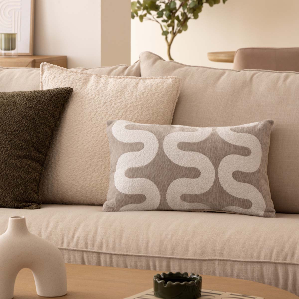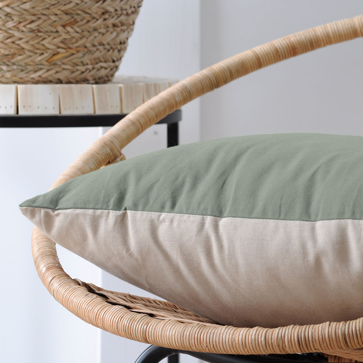 Διακοσμητικό μαξιλάρι διπλής όψεως. Η μια πλευρά έχει εκρού χρώμα, ενώ η άλλη χακί. Το εξωτερικό ύφασμα είναι 100% βαμβάκι και το εσωτερικό γέμισμα πολυεστερική βάτα. Ανανεώστε εύκολα και γρήγορα το σαλόνι ή τον κήπο σας, δίνοντας του μια πιο φρέσκια και ανάλαφρη διάθεση. Συνδυάστε το με τα υπόλοιπα είδη του ίδιου σετ για ένα ολοκληρωμένο αποτέλεσμα στο χώρο σας.