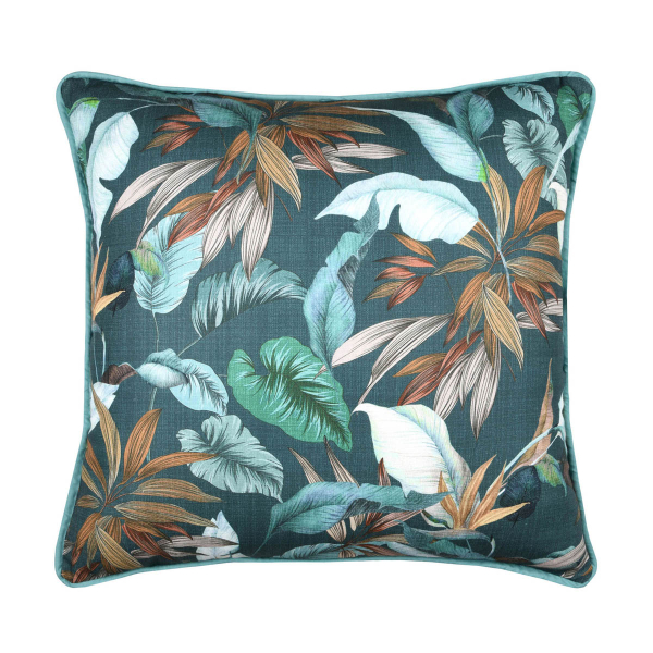 Διακοσμητικό μαξιλάρι διπλής όψης. Η μία πλευρά είναι μονόχρωμη σε βεραμάν χρώμα και η άλλη έχει tropical σχέδιο σε πετρόλ-βεραμάν αποχρώσεις. Το εξωτερικό ύφασμα είναι από 100% βαμβάκι ενώ το εσωτερικό γέμισμα πολυεστερική βάτα. Ιδανικό για να ολοκληρώσει την διακόσμηση στο σαλόνι, την κρεβατοκάμαρα ή οποιοδήποτε άλλο σημείο του σπιτιού σας.