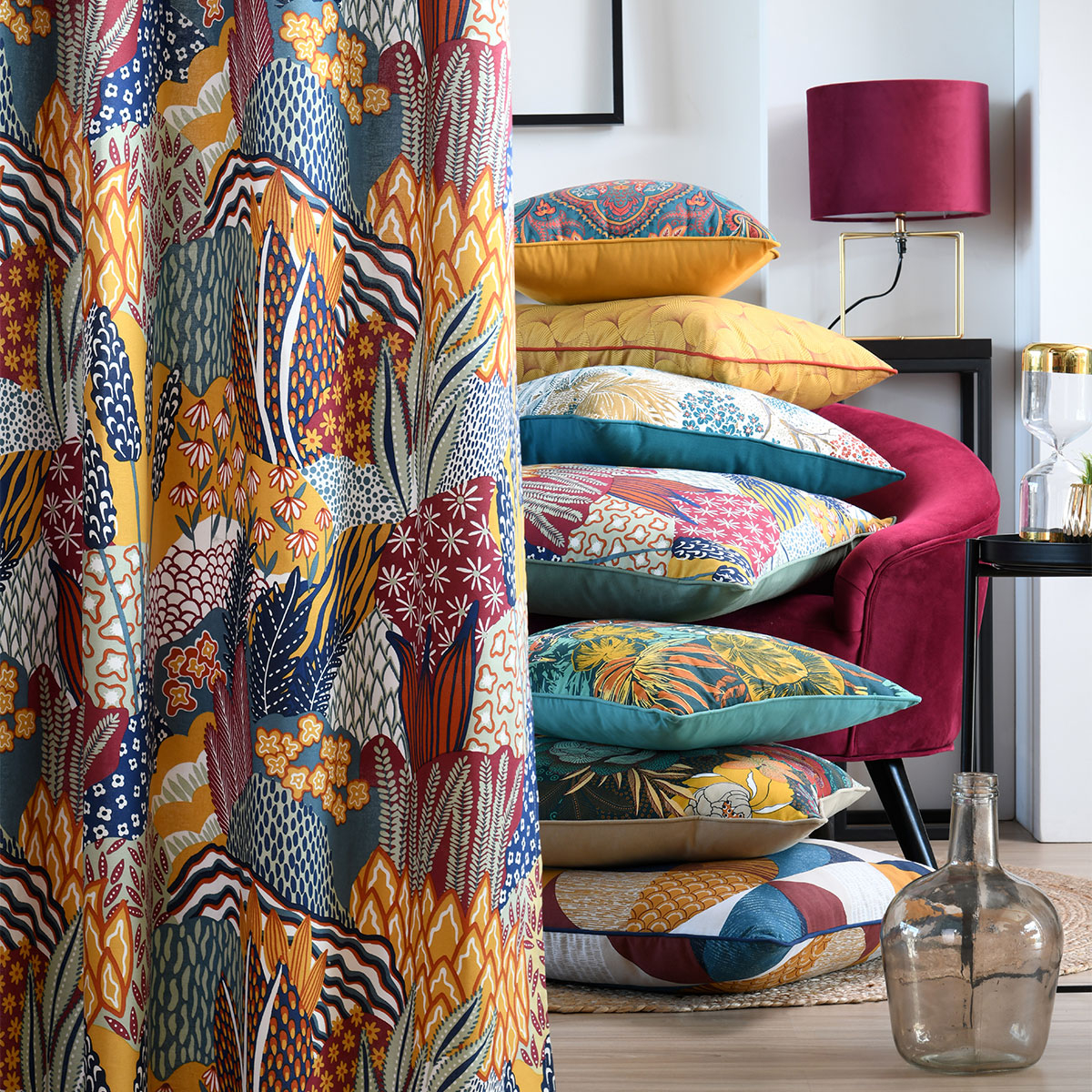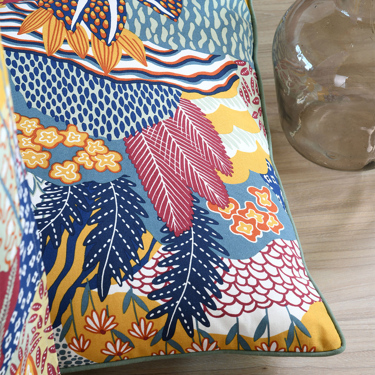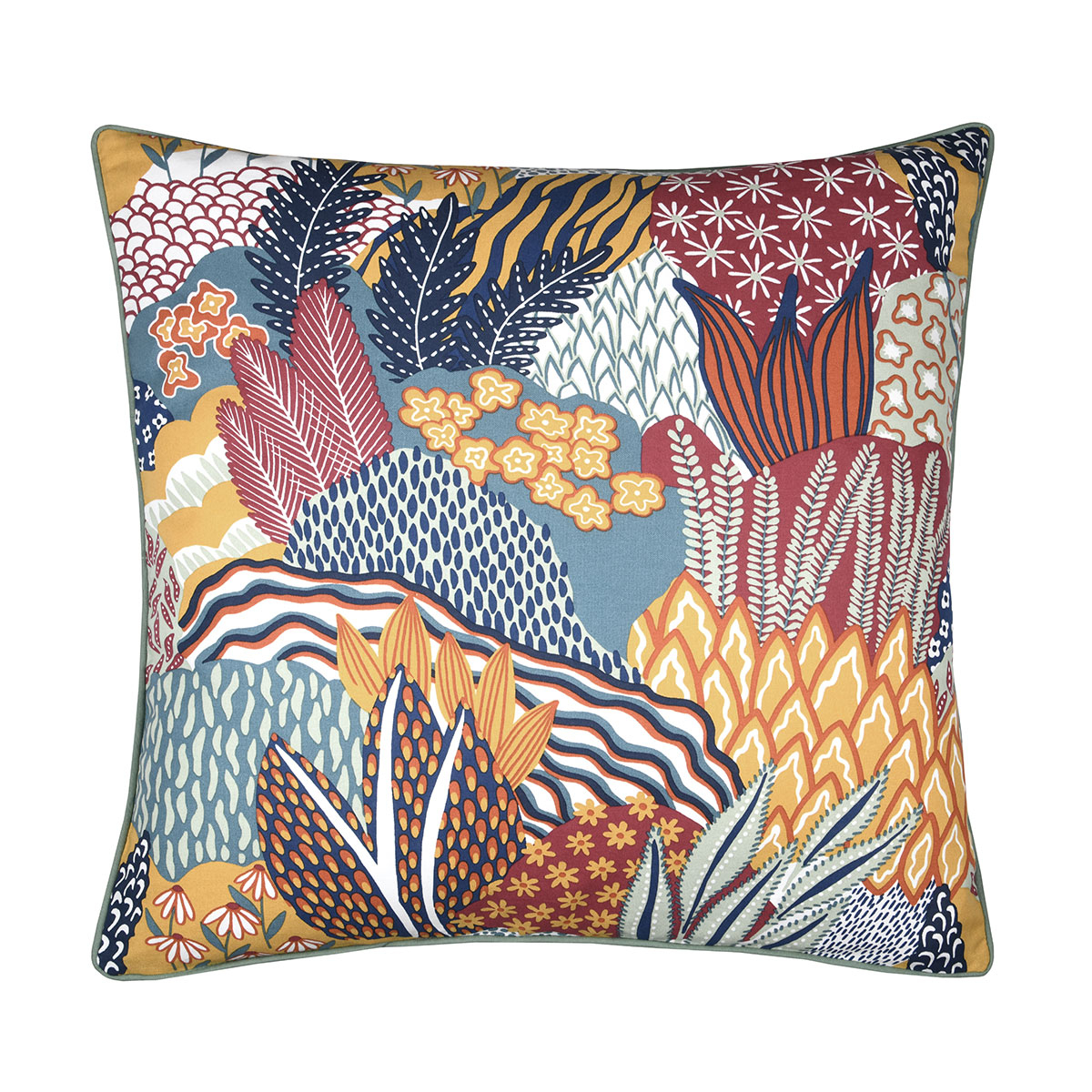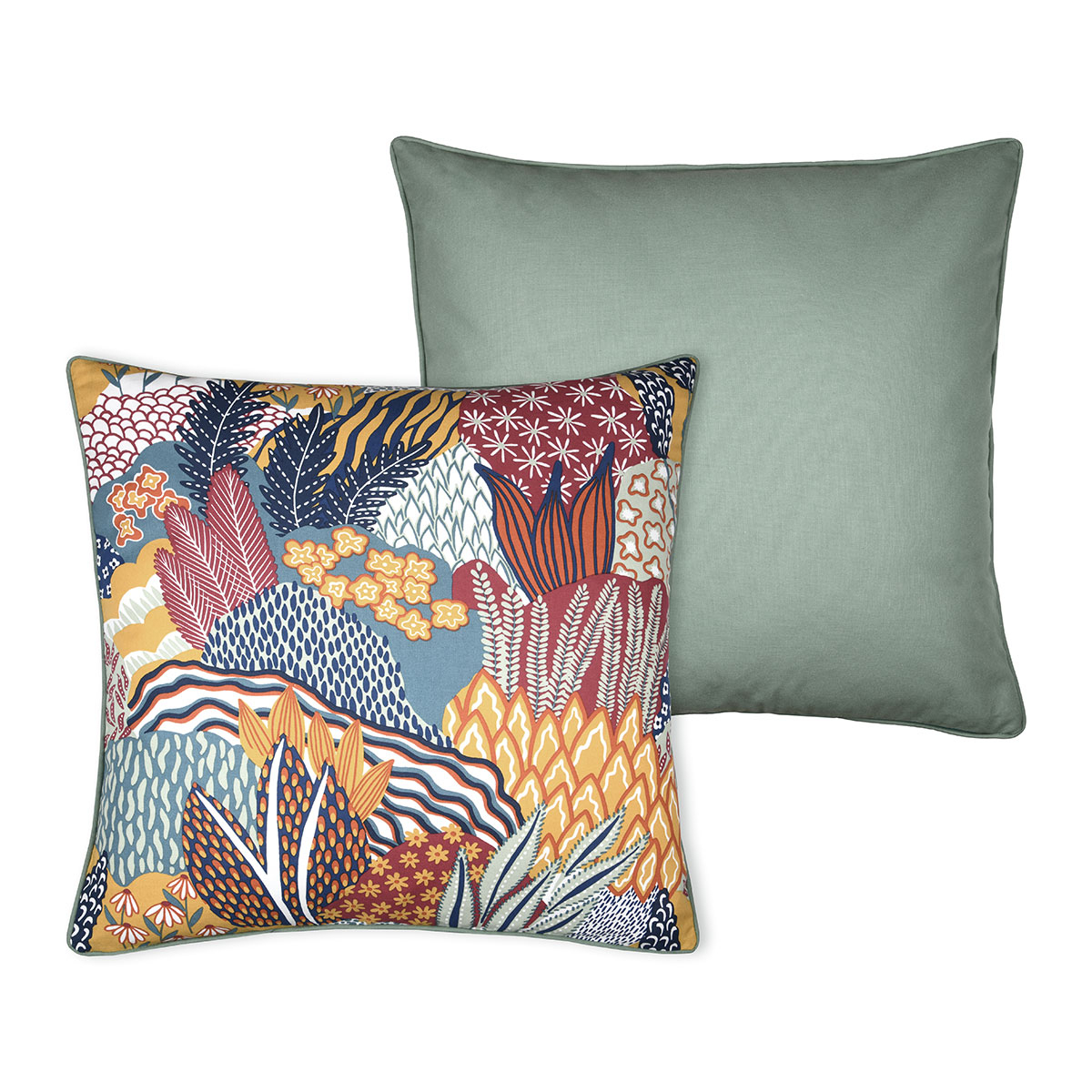 Διακοσμητικό μαξιλάρι με πολύχρωμο φλοράλ σχέδιο. Η άλλη πλευρά είναι μονόχρωμη χακί. Το εξωτερικό ύφασμα είναι κατασκευασμένο από 100% βαμβάκι ενώ το εσωτερικό γέμισμα είναι πολυεστερική βάτα. Διαθέτει φερμουάρ για να αφαιρείται η γέμιση. Συνδυάστε το με τα υπόλοιπα είδη του ίδιου σετ για να δημιουργήστε ένα ξεχωριστό στυλ.