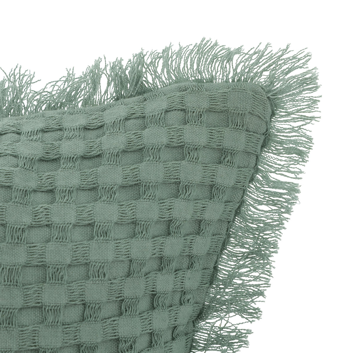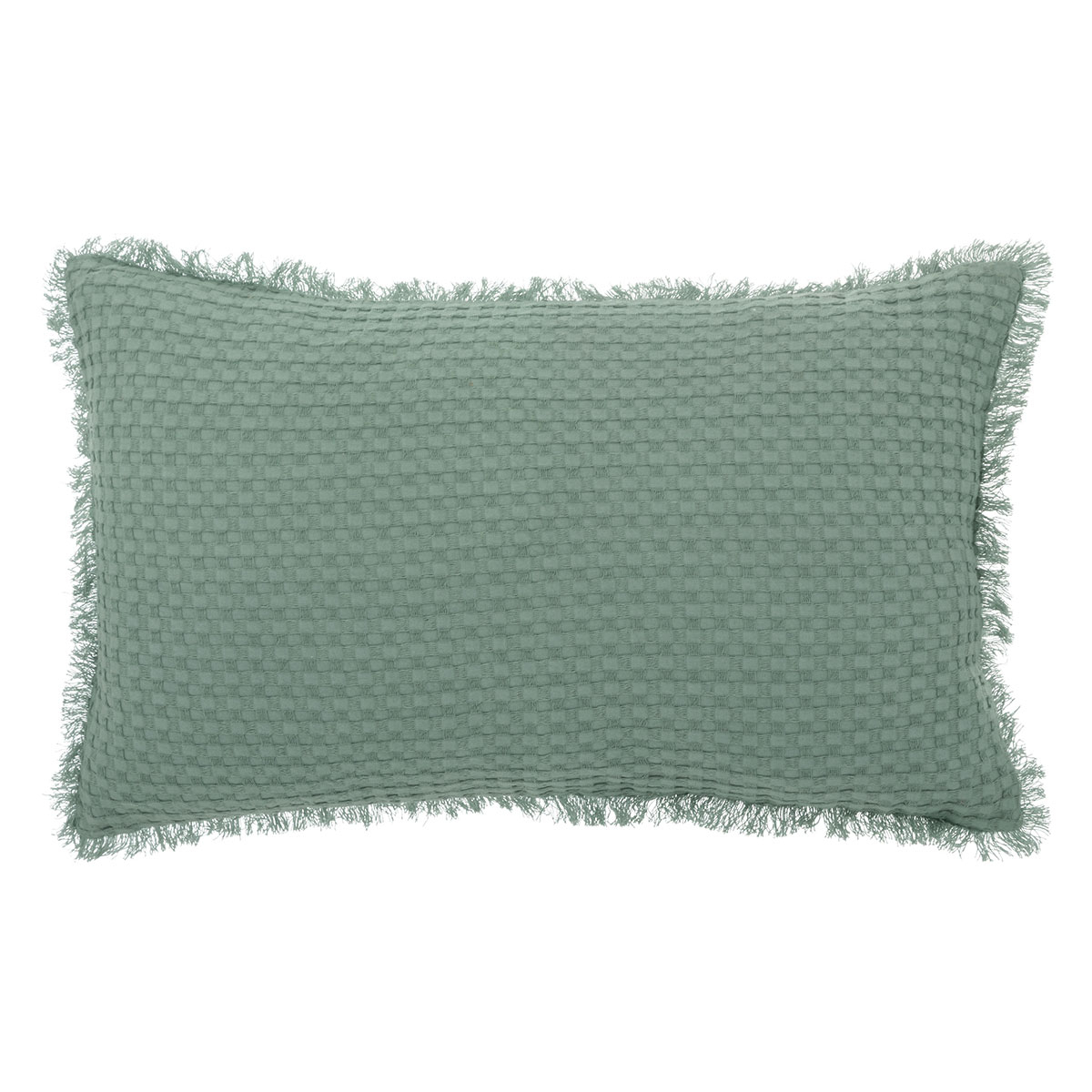 Διακοσμητικό μαξιλάρι με πλεκτό σχέδιο σε βεραμάν χρώμα και ξέφτια περιμετρικά. Η μαξιλαροθήκη είναι κατασκευασμένη από polyester και βαμβάκι ενώ η γέμιση είναι από πολυεστερική βάτα. Έχει φερμουάρ για να αφαιρείται η γέμιση και να πλένεται. Συνδυάστε το με τα υπόλοιπα είδη της σειράς για ένα ολοκληρωμένο αποτέλεσμα.