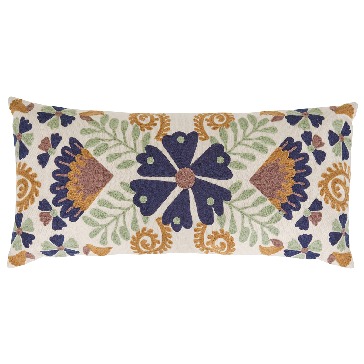 Μακρόστενο διακοσμητικό μαξιλάρι 35x75 με μοντέρνο σχέδιο. Το εξωτερικό ύφασμά είναι από polyester και βαμβάκι σε ιβουάρ χρώμα με πολύχρωμο κεντητό σχέδιο, ενώ η γέμιση είναι από πολυεστερική βάτα. Διαθέτει φερμουάρ για να αφαιρείται η γέμιση και να πλένεται. Ανανεώστε την κρεβατοκάμαρα, το σαλόνι, το γραφείο, και όποιον άλλο χώρο επιθυμείτε εύκολα, γρήγορα και οικονομικά με ένα διακοσμητικό μαξιλάρι. Συνδυάστε το με τα υπόλοιπα προϊόντα της ίδιας σειράς για ένα ολοκληρωμένο αποτέλεσμα στο χώρο σας.