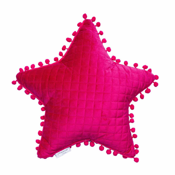 Βελουτέ διακοσμητικό μαξιλάρι σε φούξια χρώμα και σχήμα καρδιά από την εταιρεία Palamaiki. Το εξωτερικό ύφασμα είναι καπιτονέ με σύνθεση 100% Microfiber Velvet Feel και περιμετρικά πον-πον. Η γέμιση δεν αφαιρείται.