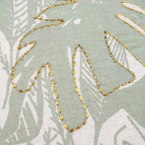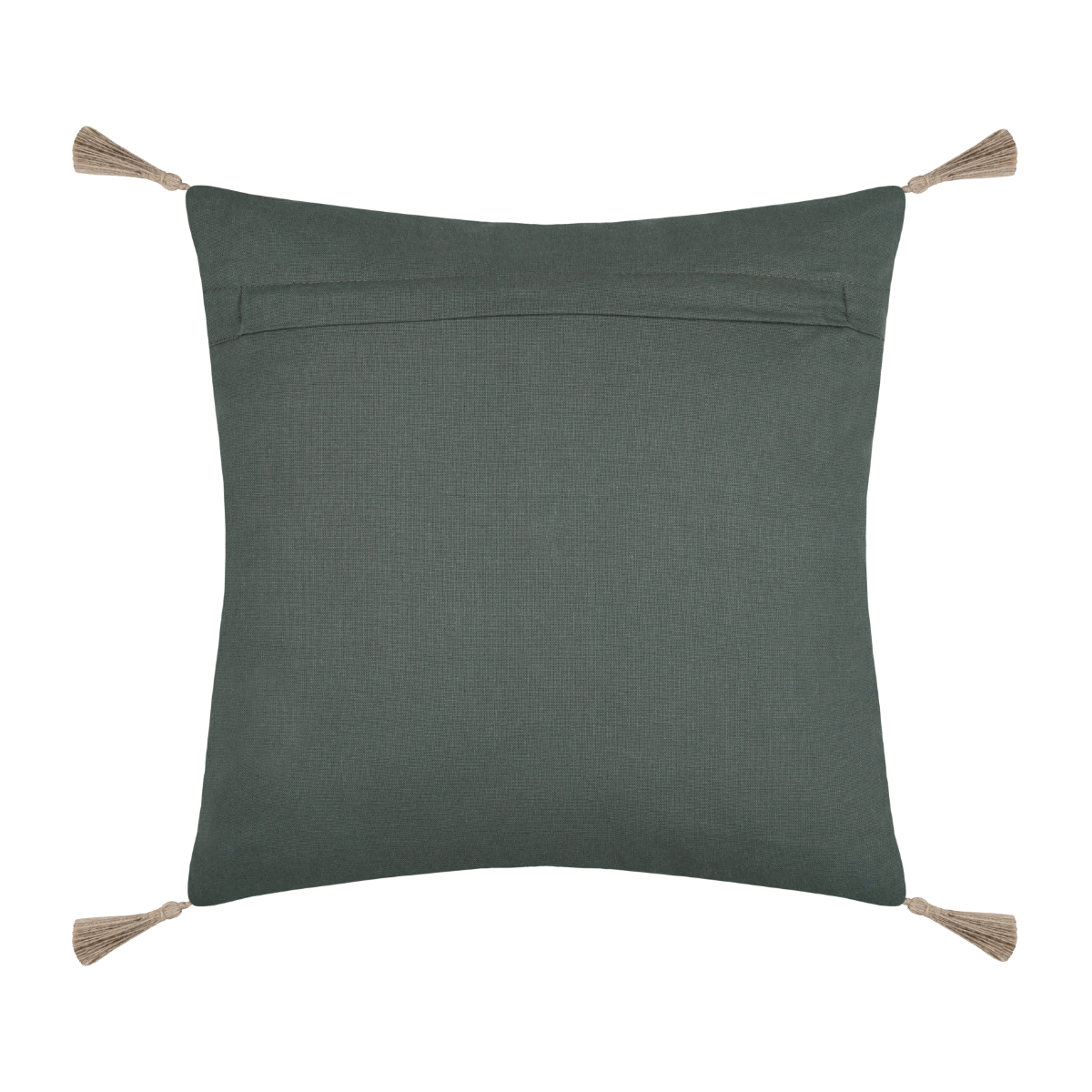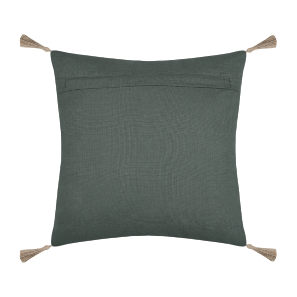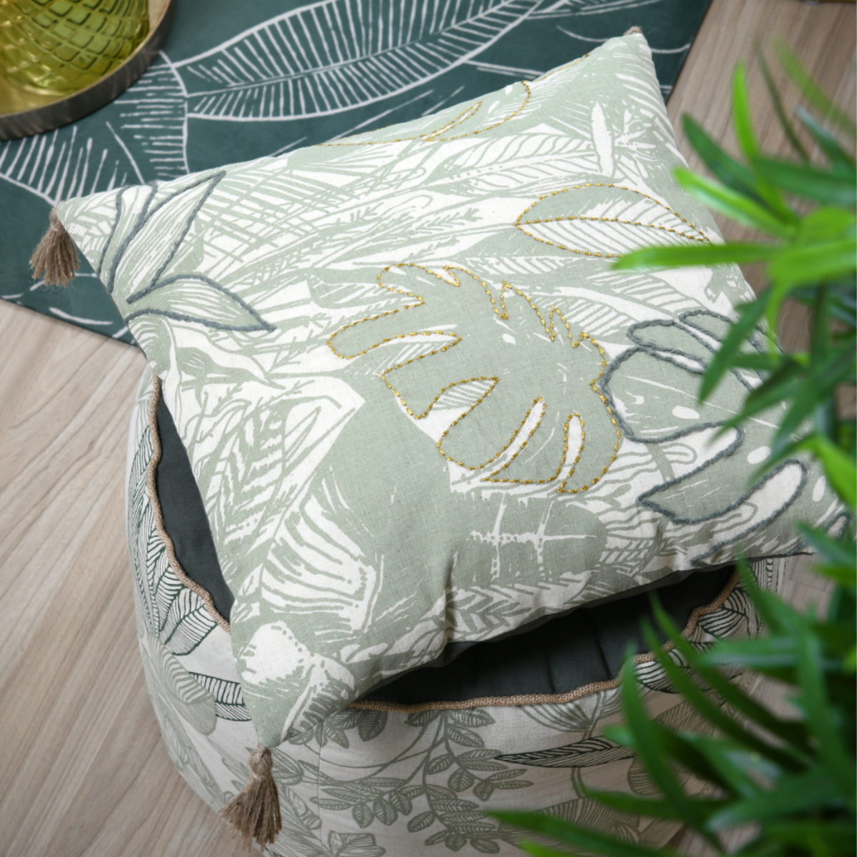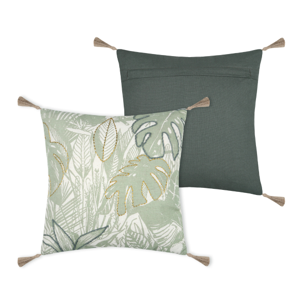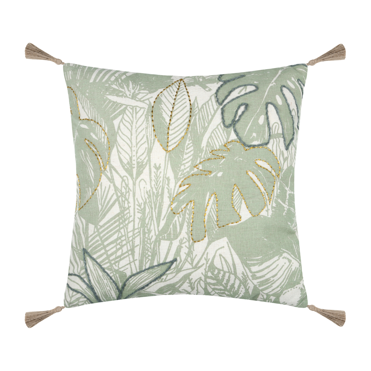 Διακοσμητικό μαξιλάρι σε πράσινες αποχρώσεις με φλοράλ σχέδιο και εκρού-μπεζ λεπτομέρειες. Το εξωτερικό ύφασμα είναι από 85% βαμβάκι-15% λινό ενώ το εσωτερικό γέμισμα πολυεστερική βάτα. Διαθέτει φερμουάρ για να αφαιρείται η γέμιση και διακοσμητικές φουντίτσες στις γωνίες. Συνδυάστε το με τα υπόλοιπα είδη της ίδιας σειράς για ένα ολοκληρωμένο αποτέλεσμα στο χώρο σας.