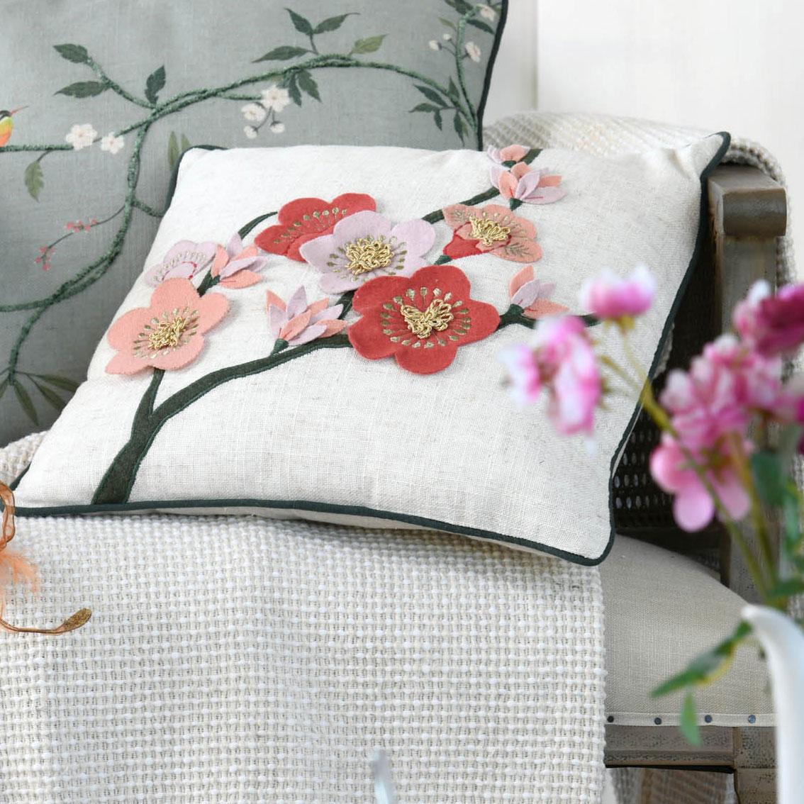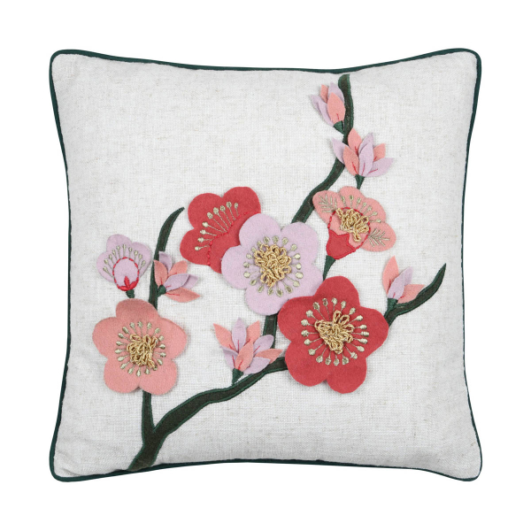 Διακοσμητικό μαξιλάρι με εκρού φόντο και απλικέ φλοράλ σχέδιο σε ροζ-κοραλί αποχρώσεις. Το εξωτερικό ύφασμα είναι από 50% βαμβάκι-46% polyester-4% λινό, ενώ η γέμιση είναι πολυεστερική βάτα. Διαθέτει φερμουάρ για να αφαιρείται η γέμιση και να πλένεται. Ανανεώστε εύκολα τον χώρο του σπιτιού σας, δίνοντας μια φρέσκια και ανάλαφρη διάθεση.