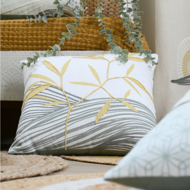 Διακοσμητικό μαξιλάρι με λευκό φόντο και φλοράλ σχέδιο σε μπεζ-γκρι-πράσινο χρώμα. Το εξωτερικό ύφασμα είναι από 100% βαμβάκι ενώ το εσωτερικό γέμισμα πολυεστερική βάτα. Διαθέτει φερμουάρ για να αφαιρείται η γέμιση και να πλένεται. Συνδυάστε το με τα υπόλοιπα είδη της ίδιας σειράς για ένα ολοκληρωμένο αποτέλεσμα στο χώρο σας.