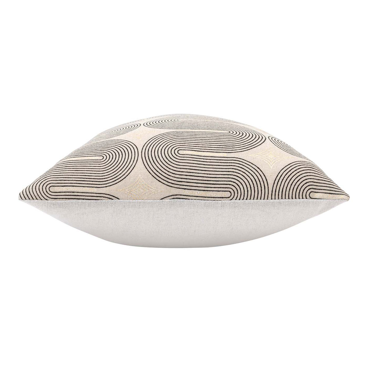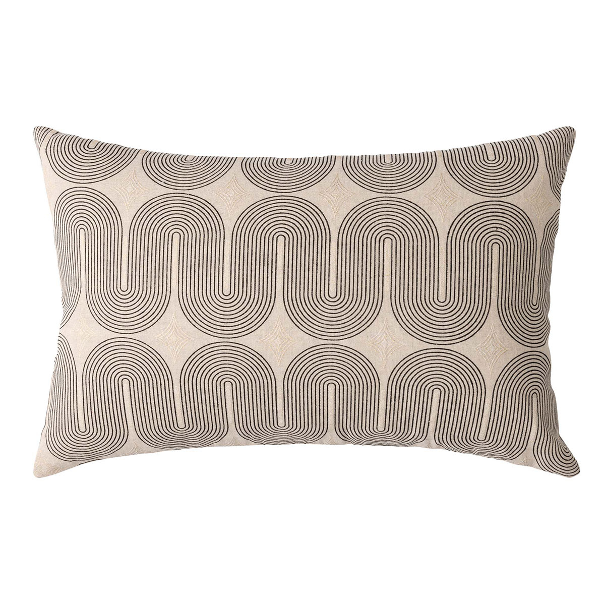 Διακοσμητικό μαξιλάρι σε μπεζ-εκρού χρώμα με μοντέρνο σχέδιο και μαύρες λεπτομέρειες. Το εξωτερικό ύφασμα είναι από 69% polyester-17% βαμβάκι-8% βισκόζη-4% πολυαμίδιο-1% μαλλί, ενώ η γέμιση είναι πολυεστερική βάτα. Διαθέτει φερμουάρ για να αφαιρείται η γέμιση και να πλένεται. Ανανεώστε εύκολα τον χώρο του σπιτιού σας, δίνοντας μια φρέσκια και ανάλαφρη διάθεση.