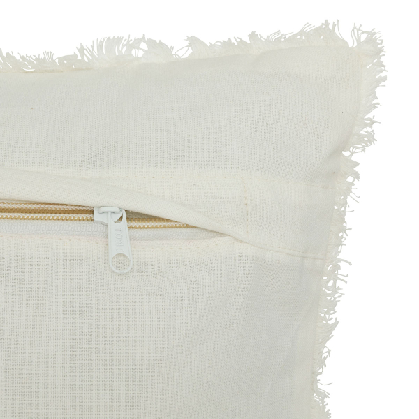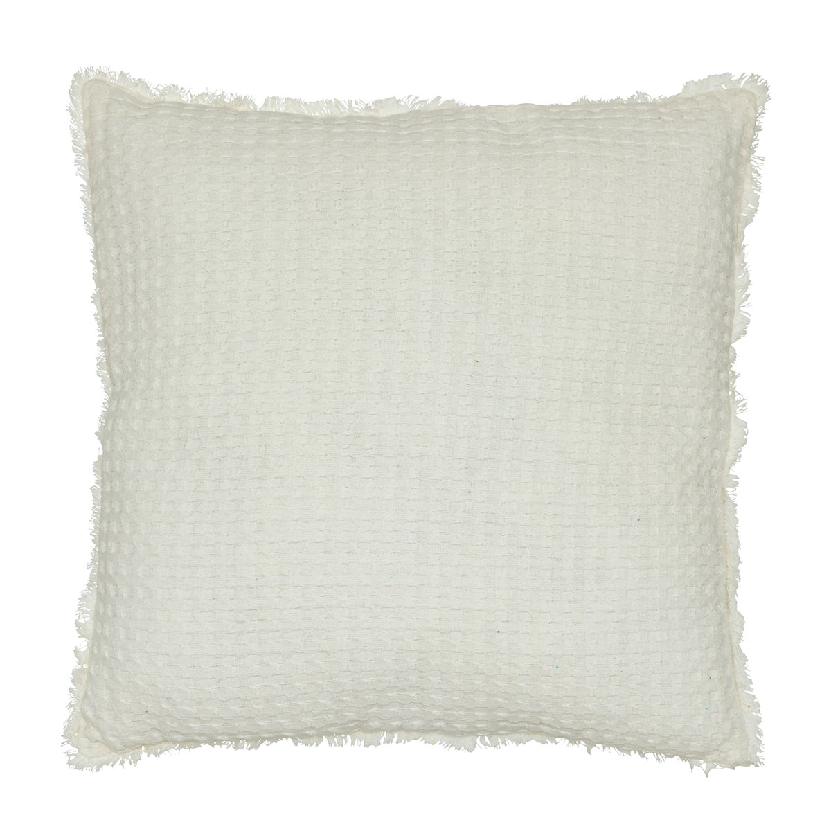 Διακοσμητικό μαξιλάρι με πλεκτό σχέδιο σε λευκό χρώμα και ξέφτια περιμετρικά. Η μαξιλαροθήκη είναι κατασκευασμένη από polyester και βαμβάκι ενώ η γέμιση είναι από πολυεστερική βάτα. Έχει φερμουάρ για να αφαιρείται η γέμιση και να πλένεται. Συνδυάστε το με τα υπόλοιπα είδη της σειράς για ένα ολοκληρωμένο αποτέλεσμα.
