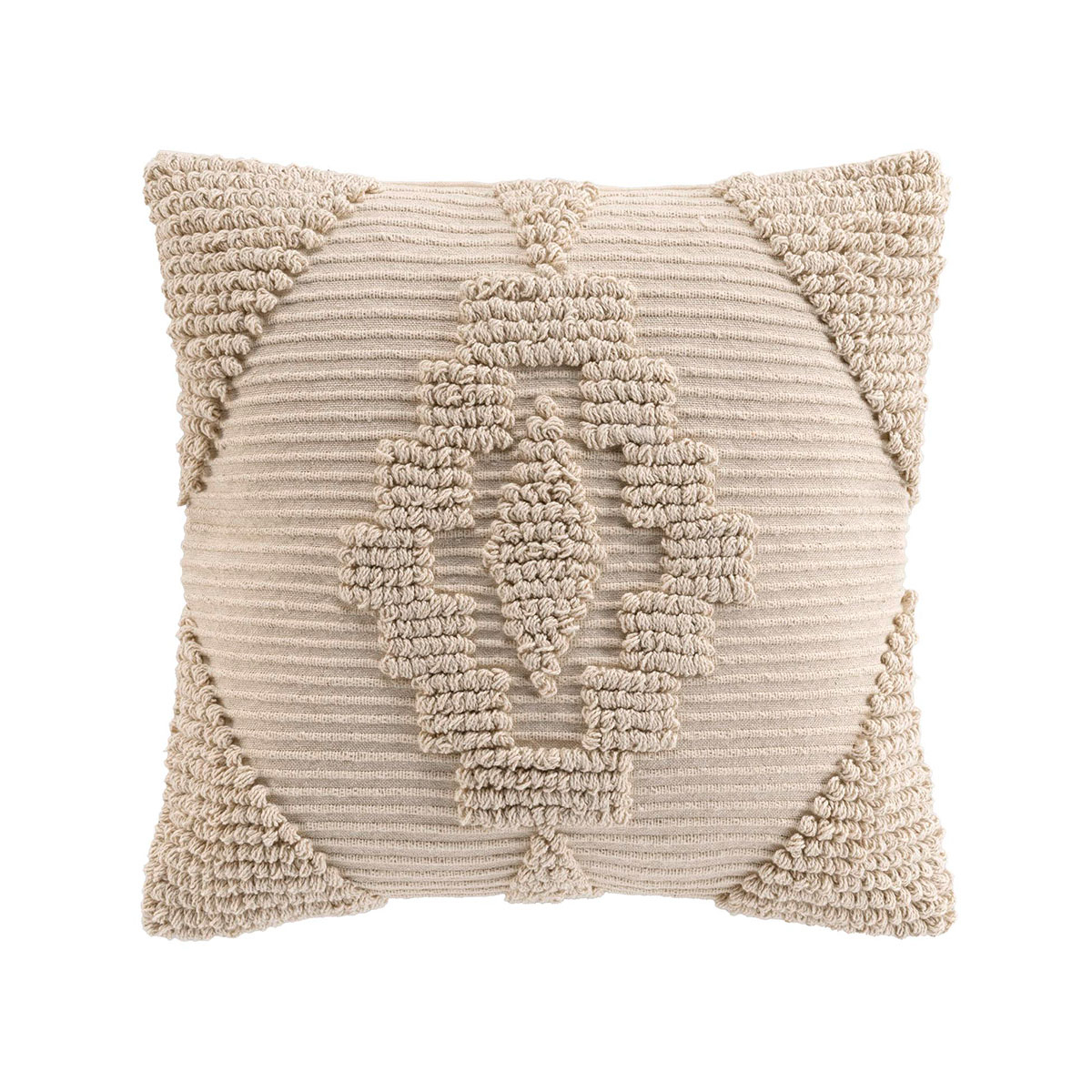 Διακοσμητικό μαξιλάρι σε μπεζ χρώμα με ανάγλυφο σχέδιο. Το εξωτερικό ύφασμα είναι από 72% βαμβάκι-29% polyester, ενώ η γέμιση είναι πολυεστερική βάτα. Διαθέτει φερμουάρ για να αφαιρείται η γέμιση και να πλένεται. Ανανεώστε εύκολα τον χώρο του σπιτιού σας, δίνοντας μια φρέσκια και ανάλαφρη διάθεση.
