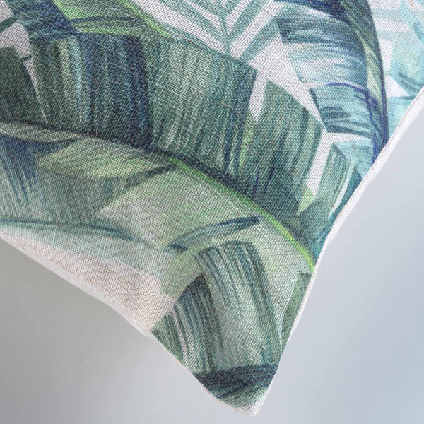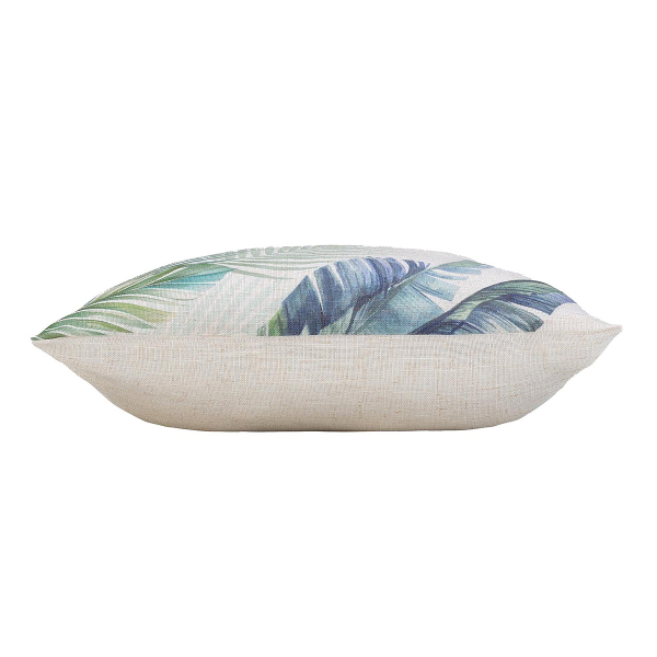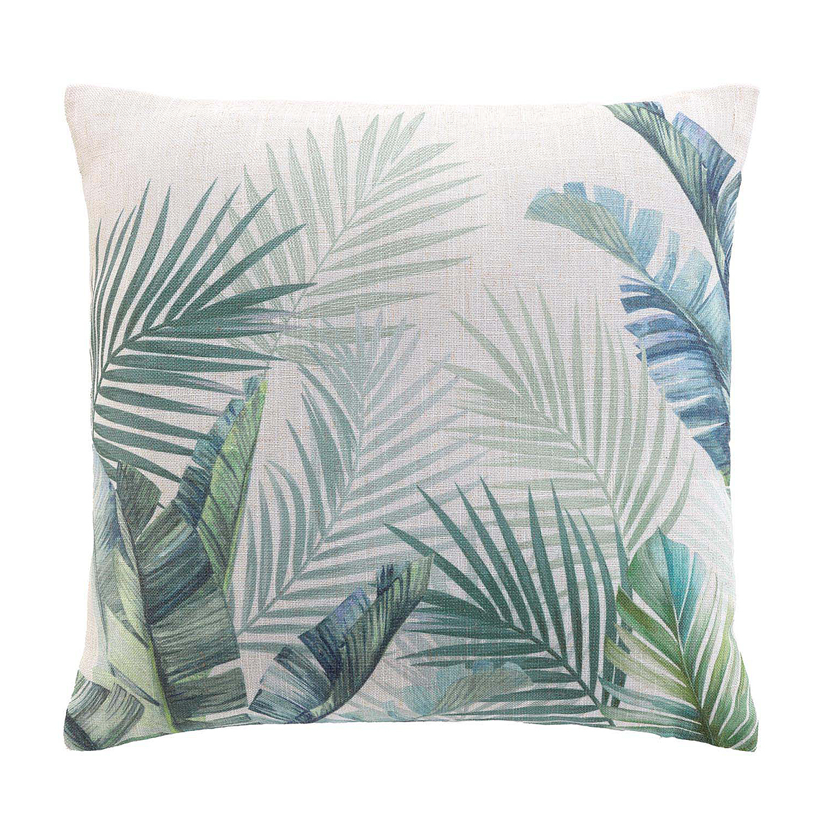 Διακοσμητικό μαξιλάρι σε εκρού χρώμα με tropical σχέδιο σε πράσινες αποχρώσεις. Η σύνθεση της μαξιλαροθήκης είναι από 94% polyester, 2% βαμβάκι 2% βισκόζη και 2% λινό, ενώ η γέμιση από πολυεστερική βάτα. Διαθέτει φερμουάρ για να αφαιρείται η γέμιση και να πλένεται. Συνδυάστε το με τα υπόλοιπα είδη της συλλογής για ένα ολοκληρωμένο αποτέλεσμα.