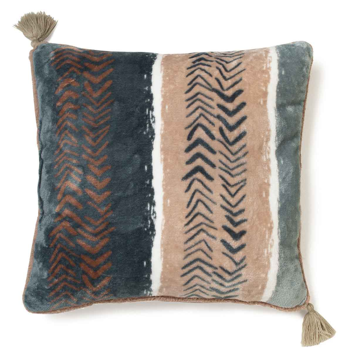 Διακοσμητικό μαξιλάρι σε καφέ-πετρόλ χρώμα, με έθνικ σχέδιο και βεραμάν λεπτομέρειες από την εταιρία Melinen. Το εξωτερικό ύφασμα είναι fleece, 100% polyester ενώ το εσωτερικό γέμισμα είναι από πολυεστερική βάτα. ** Το σχέδιο στις μαξιλαροθήκες ενδέχεται να διαφέρει από αυτό της φωτογραφίας, καθώς η εταιρεία παράγει μαξιλαροθήκες από όλο το σχέδιο του υφάσματος και τις συσκευάζει με τυχαία σειρά. **