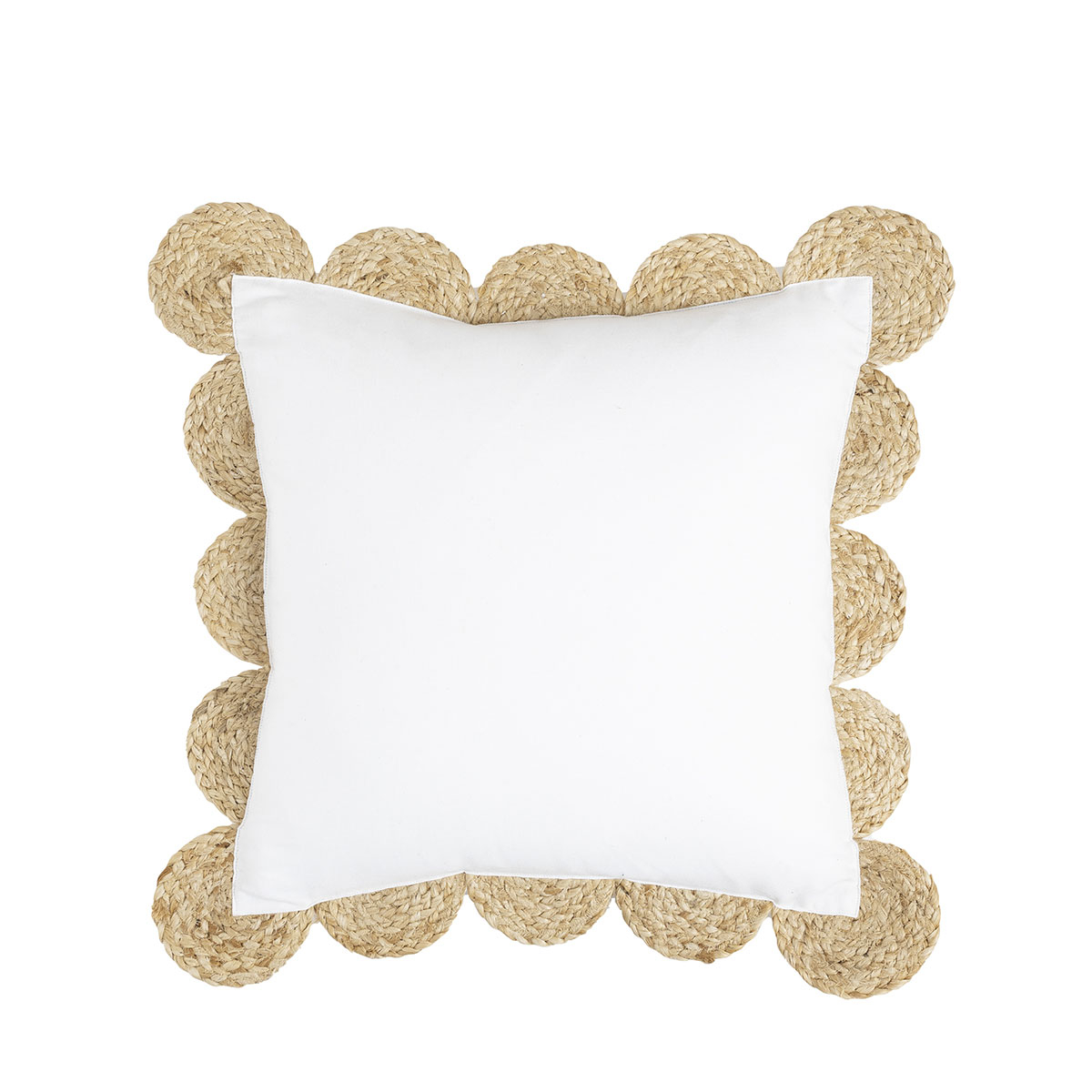 Διακοσμητικό μαξιλάρι σε λευκό χρώμα, με μπεζ λεπτομέρειες και ψάθινες λεπτομέρειες περιμετρικά από την εταιρεία Nima. Είναι κατασκευασμένο είναι από 65%jute και 35% βαμβάκι ενώ η γέμιση είναι από πολυεστερική βάτα. Διακοσμήστε το σε όποιο χώρο του σπιτιού σας επιθυμείτε και δημιουργήστε ένα ξεχωριστό στυλ.