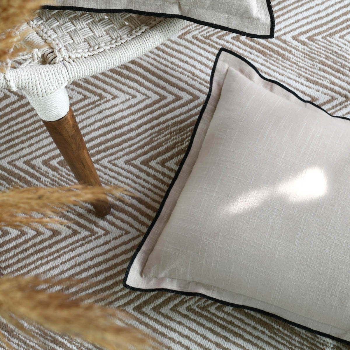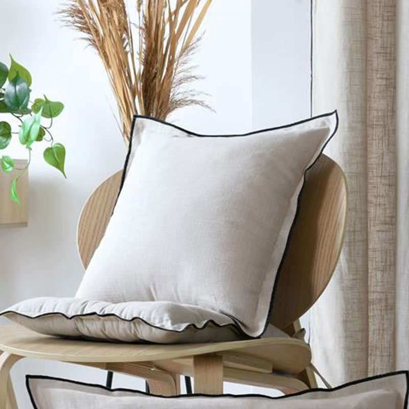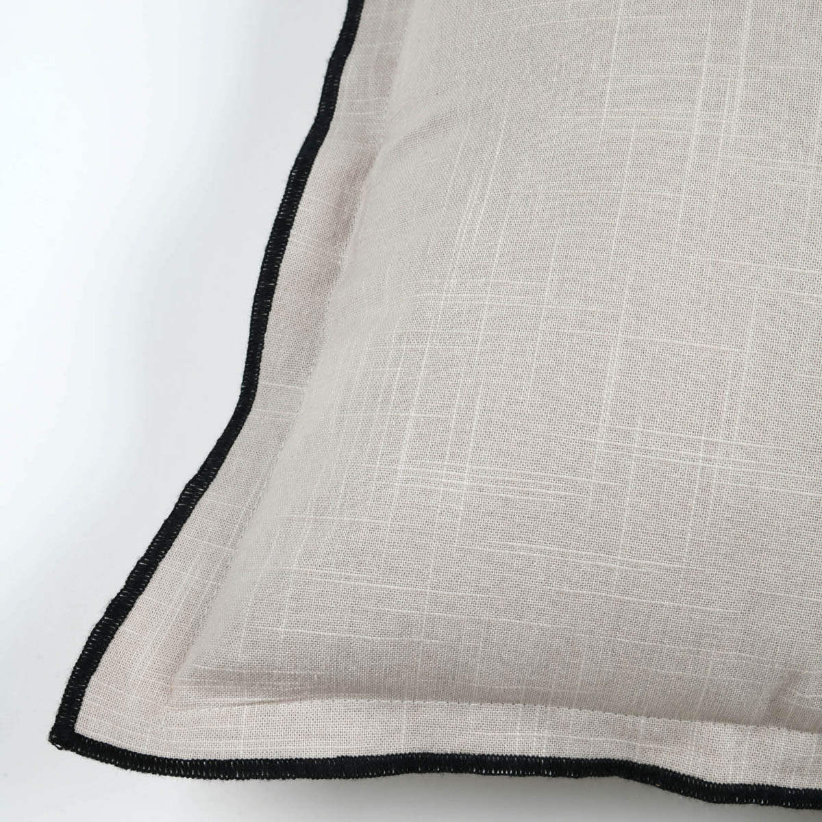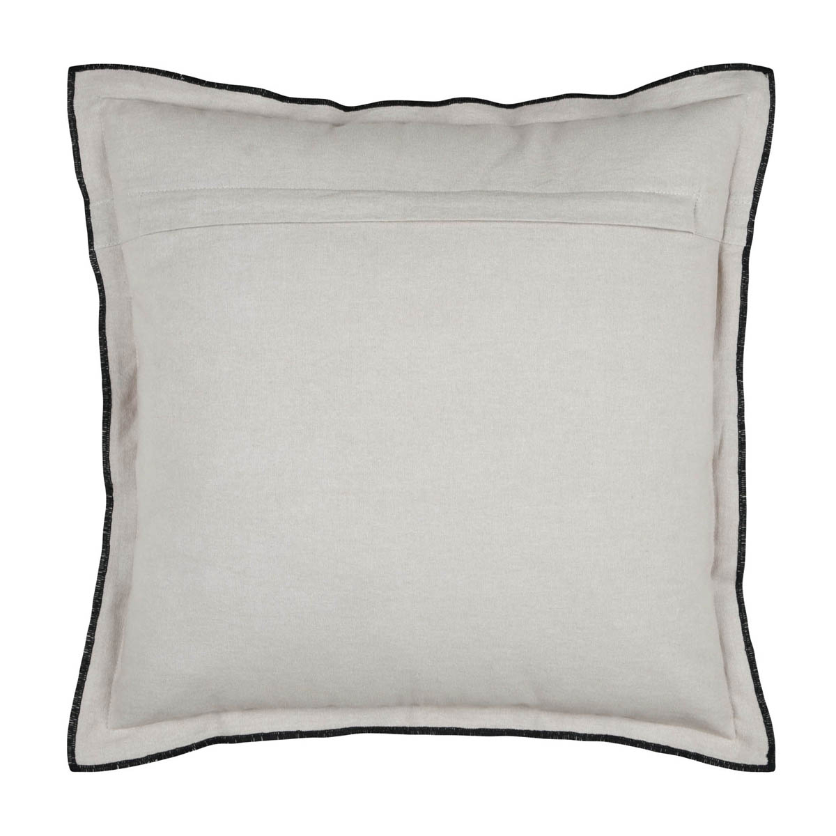 Διακοσμητικό μαξιλάρι σε εκρού χρώμα με μαύρες λεπτομέρειες. Το εξωτερικό του ύφασμα είναι από 100% βαμβάκι ενώ το εσωτερικό γέμισμα πολυεστερική βάτα. Διαθέτει φερμουάρ για να αφαιρείται η γέμιση και να πλένεται. Συνδυάστε το με τα υπόλοιπα είδη της ίδιας σειράς για ένα ολοκληρωμένο αποτέλεσμα στον χώρο σας.