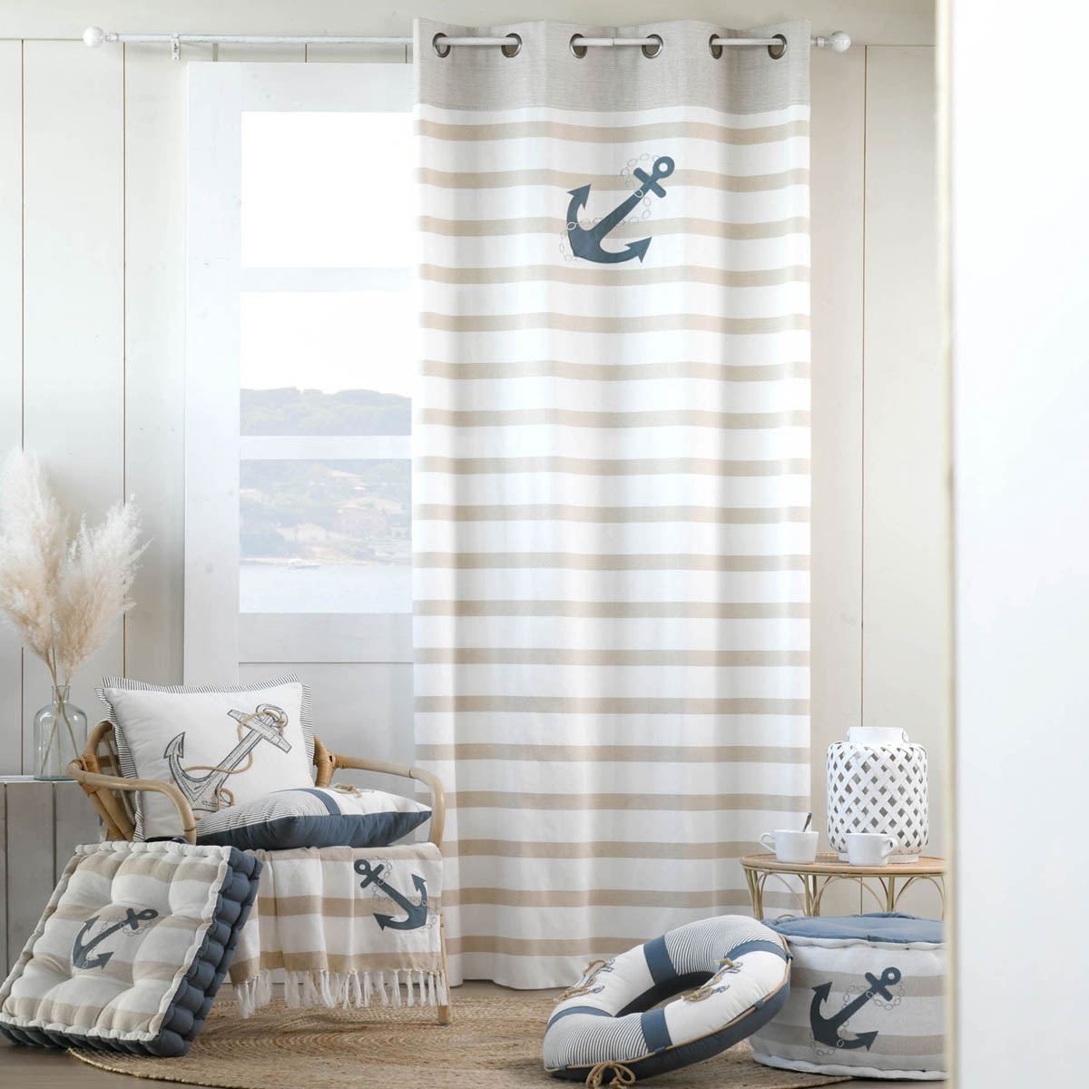 Διακοσμητικό μαξιλάρι σε εκρού-μπλε χρώμα με μπεζ λεπτομέρειες και σχέδιο με άγκυρα. Το εξωτερικό ύφασμα είναι από 100% βαμβάκι ενώ η γέμιση είναι πολυεστερική βάτα. Διαθέτει φερμουάρ για να αφαιρείται η γέμιση είναι και να πλένεται. Συνδυάστε το με τα υπόλοιπα είδη της ίδιας σειράς για ένα ολοκληρωμένο αποτέλεσμα στον χώρο σας.