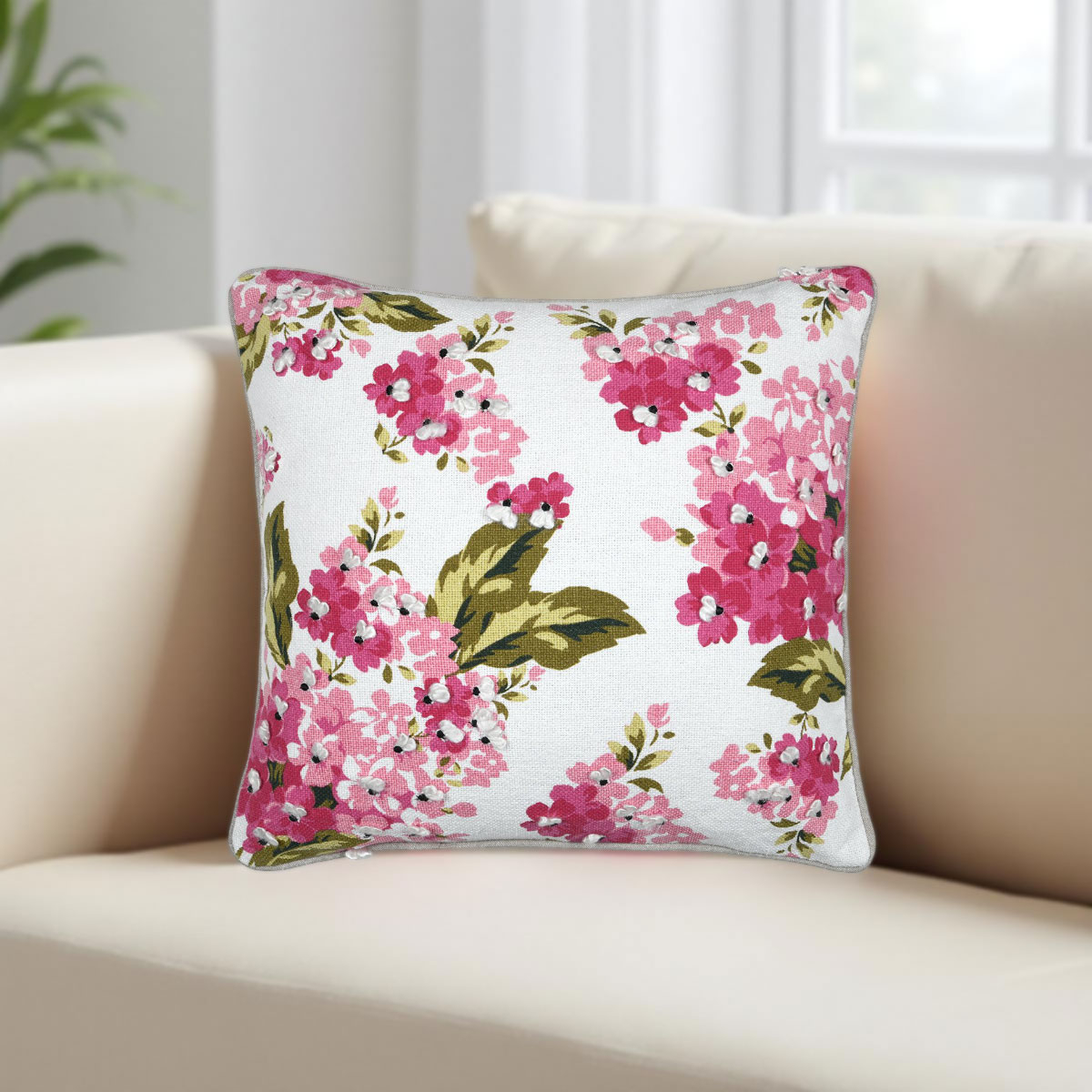 Διακοσμητικό μαξιλάρι με ροζ-φούξια και πράσινο φλοράλ σχέδιο. Η μπροστινή όψη είναι λευκή και η πίσω σε γκρι- μπεζ χρώμα. Το εξωτερικό ύφασμά του είναι από 55% βαμβάκι-45% polyester ενώ η γέμιση είναι πολυεστερική βάτα. Διαθέτει φερμουάρ για να αφαιρείται η γέμιση είναι και να πλένεται. Συνδυάστε το με τα υπόλοιπα είδη της ίδιας σειράς για ένα ολοκληρωμένο αποτέλεσμα στον χώρο σας.