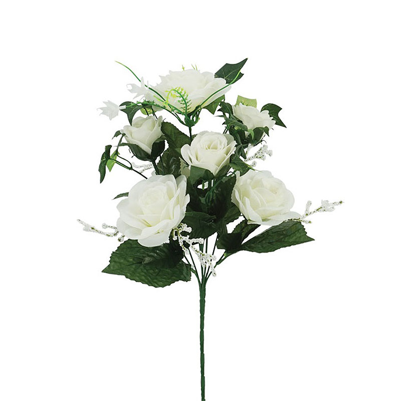 Τεχνητό μπουκέτο λουλουδιών της εταιρείας Marhome με 7 τριαντάφυλλα σε λευκό χρώμα. Είναι κατασκευασμένο από ύφασμα και πλαστικό υλικό, ενώ έχει μεταλλικό σύρμα στο εσωτερικό του για να μπορείτε να του δώσετε το σχήμα που επιθυμείτε. Χρησιμοποιήστε τεχνητά φυτά για να διακοσμήσετε τους εσωτερικούς ή εξωτερικούς χώρους σας και να ανανεώσετε την αισθητική τους!