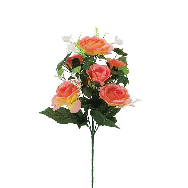 Τεχνητό μπουκέτο λουλουδιών της εταιρείας Marhome με 7 τριαντάφυλλα σε κοραλί χρώμα. Είναι κατασκευασμένο από ύφασμα και πλαστικό υλικό, ενώ έχει μεταλλικό σύρμα στο εσωτερικό του για να μπορείτε να του δώσετε το σχήμα που επιθυμείτε. Χρησιμοποιήστε τεχνητά φυτά για να διακοσμήσετε τους εσωτερικούς ή εξωτερικούς χώρους σας και να ανανεώσετε την αισθητική τους!