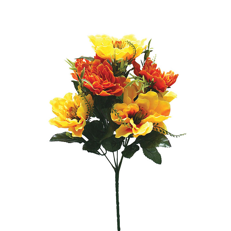 Τεχνητό μπουκέτο λουλουδιών της εταιρείας Marhome με άνθη μανώλιας και χρυσάνθεμου σε κίτρινες-πορτοκαλί αποχρώσεις. Είναι κατασκευασμένο από ύφασμα και πλαστικό υλικό, με μεταλλικό σύρμα στο εσωτερικό του για να μπορείτε να του δώσετε το σχήμα που επιθυμείτε. Χρησιμοποιήστε τεχνητά φυτά για να διακοσμήσετε τους εσωτερικούς ή εξωτερικούς χώρους σας και να ανανεώσετε την αισθητική τους!