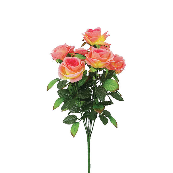 Τεχνητό μπουκέτο λουλουδιών της εταιρείας Marhome με 7 τριαντάφυλλα σε σομόν χρώμα. Είναι κατασκευασμένο από ύφασμα και πλαστικό υλικό, με μεταλλικό σύρμα στο εσωτερικό του για να μπορείτε να του δώσετε το σχήμα που επιθυμείτε. Χρησιμοποιήστε τεχνητά φυτά για να διακοσμήσετε τους εσωτερικούς ή εξωτερικούς χώρους σας και να ανανεώσετε την αισθητική τους!