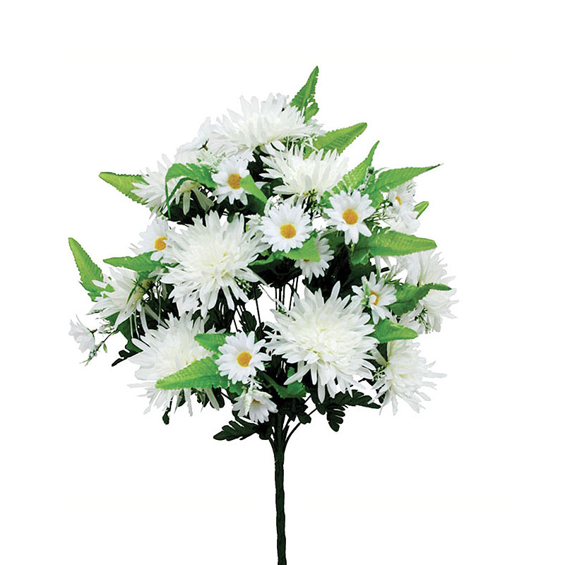 Τεχνητό μπουκέτο λουλουδιών της εταιρείας Marhome με ντάλιες και μαργαρίτες σε λευκό χρώμα. Είναι κατασκευασμένο από ύφασμα και πλαστικό υλικό, ενώ έχει μεταλλικό σύρμα εσωτερικά για να μπορείτε να του δώσετε το σχήμα που επιθυμείτε. Χρησιμοποιήστε τεχνητά φυτά για να διακοσμήσετε τους εσωτερικούς ή εξωτερικούς χώρους σας και να ανανεώσετε την αισθητική τους!