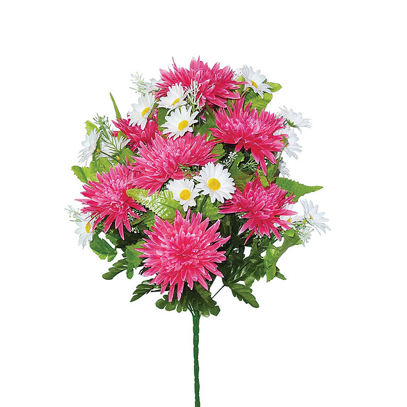 Τεχνητό μπουκέτο λουλουδιών της εταιρείας Marhome με ροζ ντάλιες και λευκές μαργαρίτες. Είναι κατασκευασμένο από ύφασμα και πλαστικό υλικό, ενώ έχει μεταλλικό σύρμα εσωτερικά για να μπορείτε να του δώσετε το σχήμα που επιθυμείτε. Χρησιμοποιήστε τεχνητά φυτά για να διακοσμήσετε τους εσωτερικούς ή εξωτερικούς χώρους σας και να ανανεώσετε την αισθητική τους!