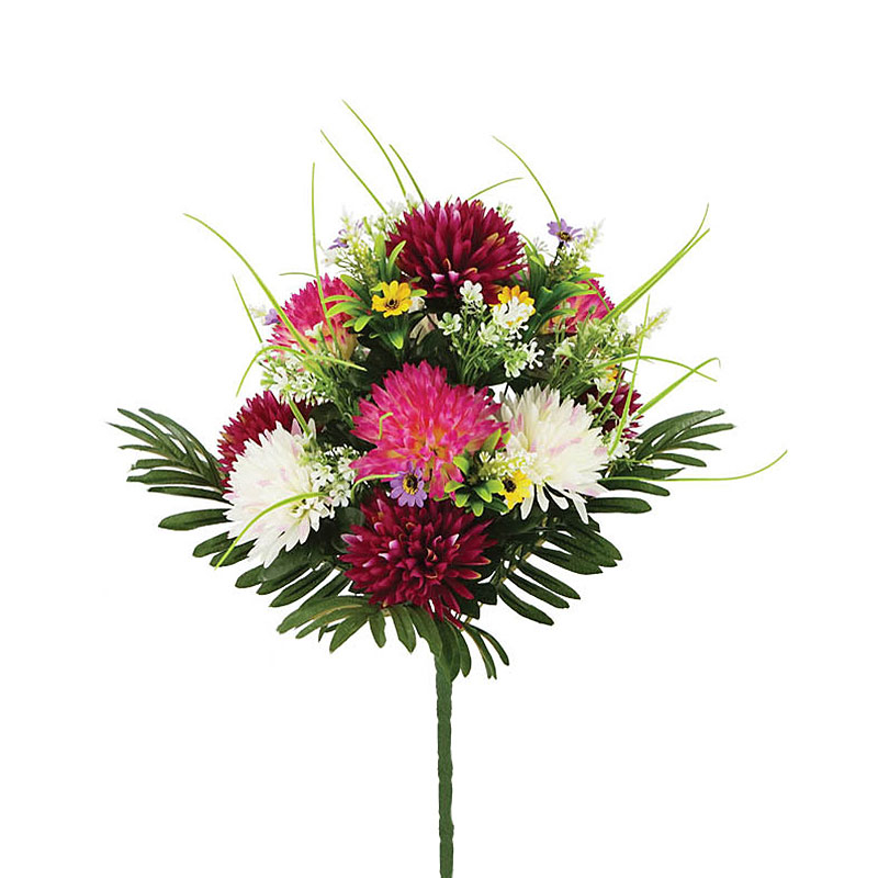 Τεχνητό μπουκέτο λουλουδιών της εταιρείας Marhome με χρυσάνθεμα σε ροζ-μπορντώ-λευκό χρώμα. Είναι κατασκευασμένο από ύφασμα και πλαστικό υλικό, ενώ έχει μεταλλικό σύρμα στο εσωτερικό του για να του δώσετε το σχήμα που επιθυμείτε. Χρησιμοποιήστε τεχνητά φυτά για να διακοσμήσετε τους εσωτερικούς ή εξωτερικούς χώρους σας και να ανανεώσετε την αισθητική τους!