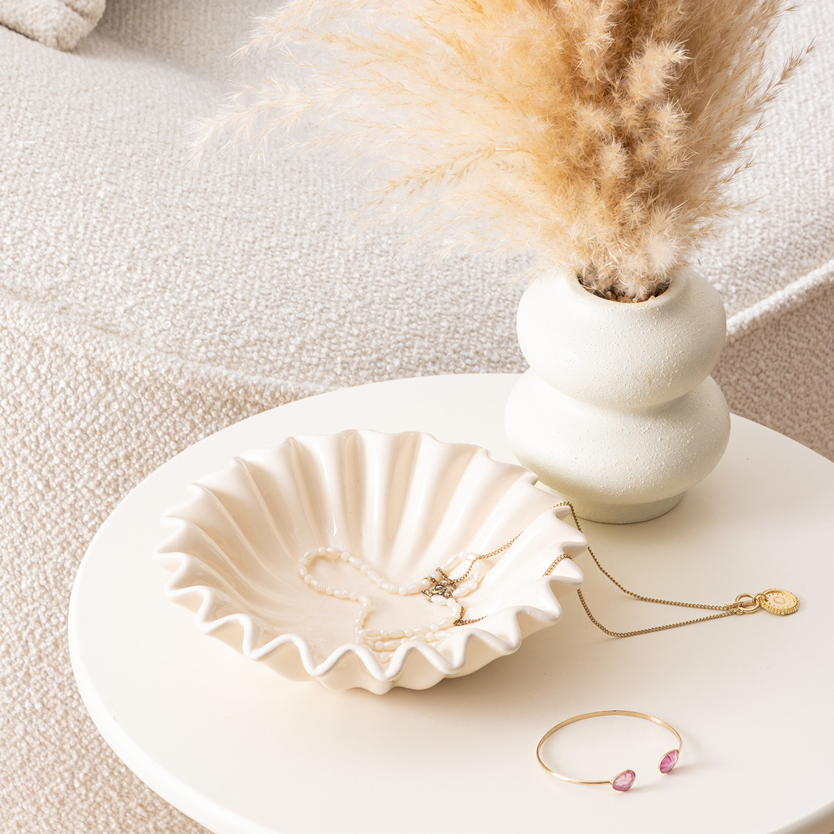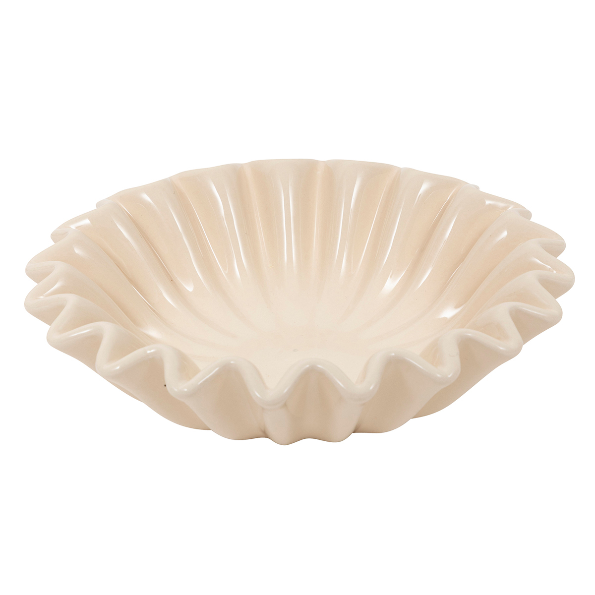 Διακοσμητικό μπωλ με μοντέρνο σχεδιασμό. Είναι κατασκευασμένο από κεραμικό υλικό σε εκρού χρώμα και έχει σχέδιο κοχυλιού. Ιδανικό για να δώσει μοναδικό στυλ στην διακόσμηση της κουζίνας, της τραπεζαρίας ή όποιου χώρου επιλέξετε να το τοποθετήσετε.