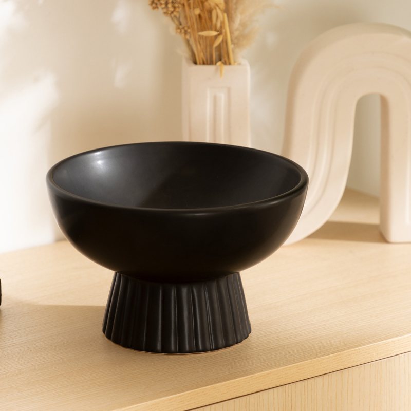 Διακοσμητικό μπωλ με μοντέρνο σχεδιασμό και ανάγλυφο σχέδιο. Είναι κατασκευασμένο από κεραμικό υλικό σε μαύρο χρώμα. Ιδανική για να δώσει μοναδικό στυλ στην διακόσμηση της κουζίνας, της τραπεζαρίας ή όποιου χώρου επιλέξετε να την τοποθετήσετε.