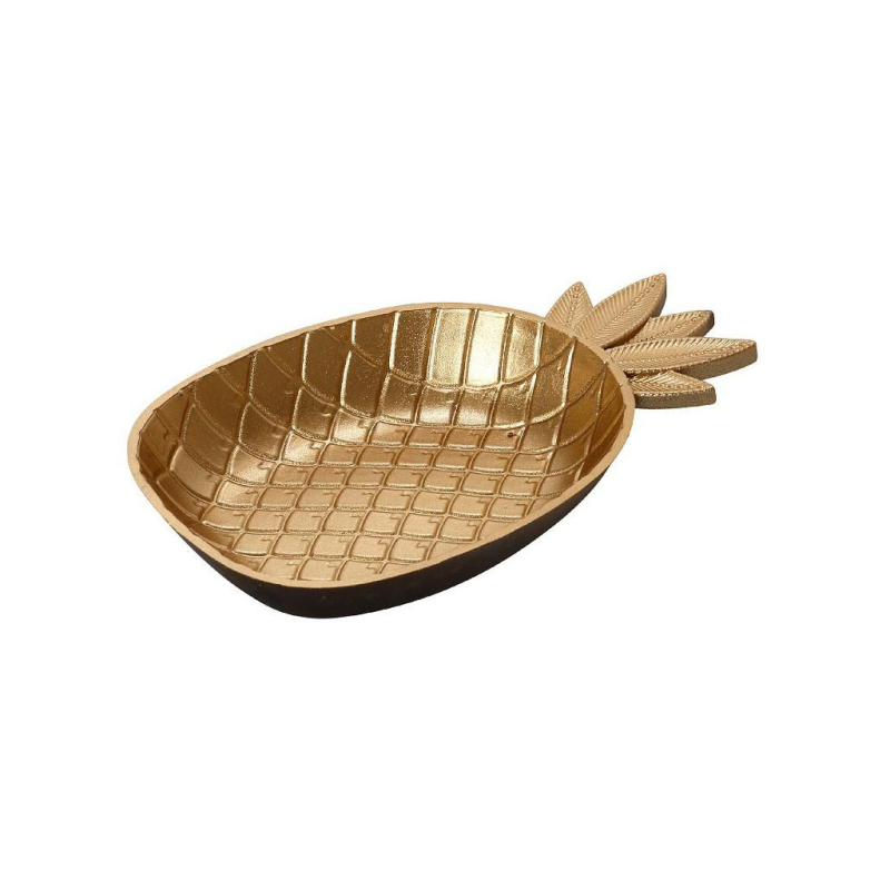 Διακοσμητικό μπωλ από την εταιρεία Espiel σε χρυσό χρώμα και σχήμα ανανά. Είναι κατασκευασμένο από πολυπροπυλένιο. Τοποθετήστε το στην τραπεζαρία ή στο τραπεζάκι του σαλονιού σας και κλέψτε τις εντυπώσεις των καλεσμένων σας. Συνδυάστε το με τα υπόλοιπα είδη της ίδιας σειράς για ένα ολοκληρωμένο σετ.