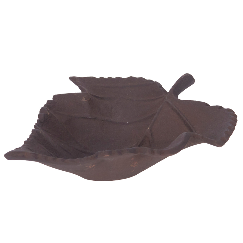 Μπωλ διακόσμησης σε σχήμα φύλλου. Είναι κατασκευασμένο από αλουμίνιο με ανάγλυφο σχήμα και έχει σκούρο καφέ χρώμα. Ιδανικό για να δώσει μοναδικό στυλ στην διακόσμηση της κουζίνας, της τραπεζαρίας ή όποιου χώρου επιλέξετε να την τοποθετήσετε. Συνδυάστε το με άλλα διακοσμητικά για να δημιουργήσετε την ατμόσφαιρα που επιθυμείτε.