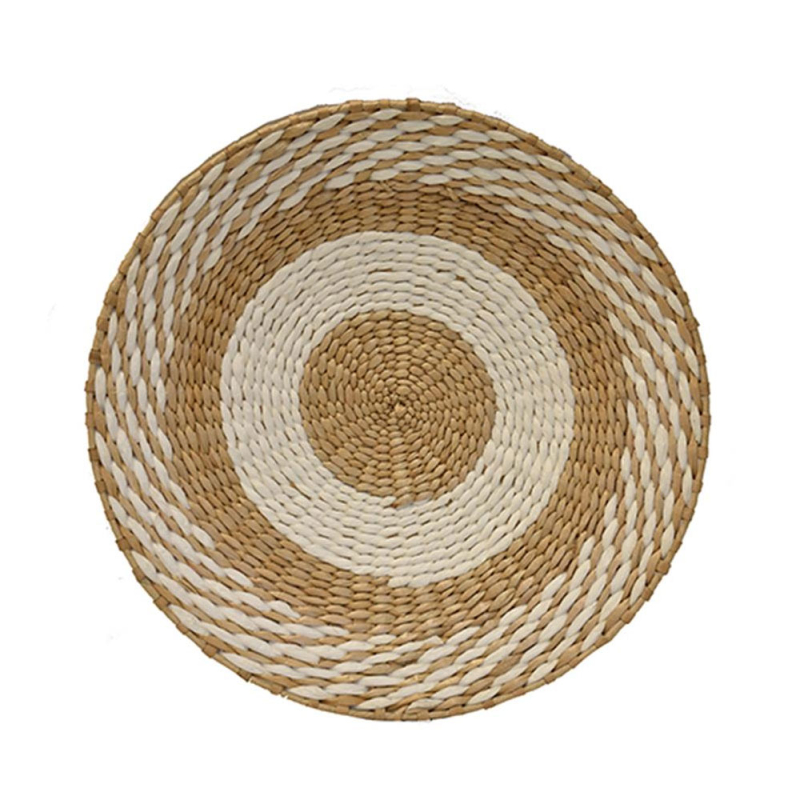 Διακοσμητικό πιάτο τοίχου με μοντέρνο σχέδιο από την εταιρία Mod. Είναι κατασκευασμένο από φυσική ψάθα σε μπεζ χρώμα με λευκές λεπτομέρειες. Μπορείτε ακόμη να το τοποθετήσετε επάνω στο τραπεζάκι σαλονιού ή την τραπεζαρία σαν διακοσμητική πιατέλα.
