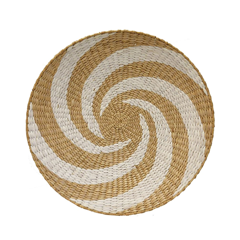 Διακοσμητικό πιάτο τοίχου με μοντέρνο σχέδιο από την εταιρία Mod. Είναι κατασκευασμένο από φυσική ψάθα σε μπεζ χρώμα με λευκές λεπτομέρειες. Μπορείτε ακόμη να το τοποθετήσετε επάνω στο τραπεζάκι σαλονιού ή την τραπεζαρία σαν διακοσμητική πιατέλα.