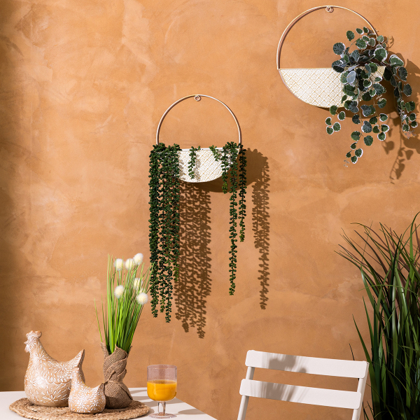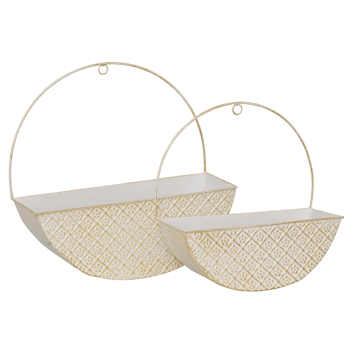 Κασπώ για τον τοίχο σας σε σετ 2 τεμαχίων με διαφορετικό μέγεθος και vintage ύφος. Είναι κατασκευασμένα από μεταλλικό υλικό σε ιβουάρ χρώμα. Αναβαθμίστε την αισθητική του χώρου σας με γλάστρες, κασπώ και ζαρντινιέρες. Συνδυάστε το με τα υπόλοιπα είδη της ίδιας συλλογής για ένα ολοκληρωμένο αποτέλεσμα στον χώρο σας.