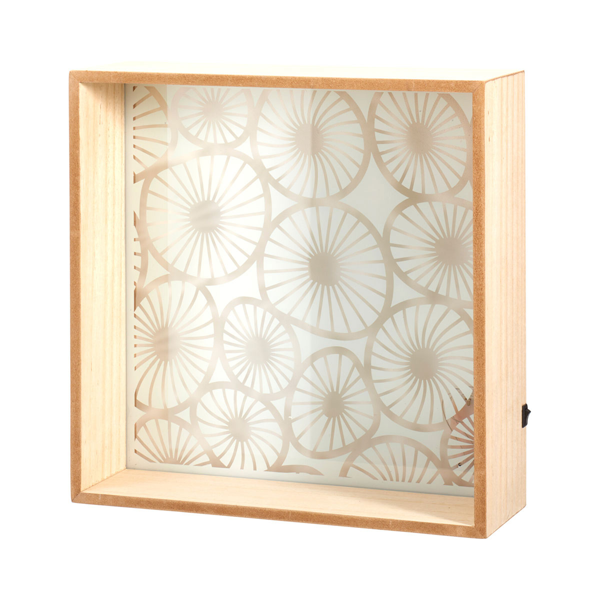 Διακοσμητικό τοίχου με φως και γυαλί με σχέδιο λευκά άνθη στο πίσω μέρος. Είναι κατασκευασμένο από MDF σε φυσικό χρώμα και διαθέτει Led περιμετρικά που φωτίζουν ομοιόμορφα. Διαθέτει διακόπτη On/Off για το φως και λειτουργεί με 2 μπαταρίες ΑΑΑ (δεν περιλαμβάνονται). Ιδανικό για να διακοσμήσει οποιονδήποτε χώρο επιθυμείτε. *Περιλαμβάνονται τα εξαρτήματα για τοποθέτηση στον τοίχο*