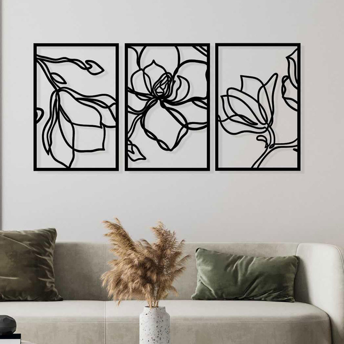 Διακοσμητικό τοίχου με φλοράλ σχέδιο κατασκευασμένο από μέταλλο σε μαύρη απόχρωση. Τοποθετήστε σε έναν κενό τοίχο για να συμπληρώσετε μία μοντέρνα διακόσμηση στον χώρο σας.
