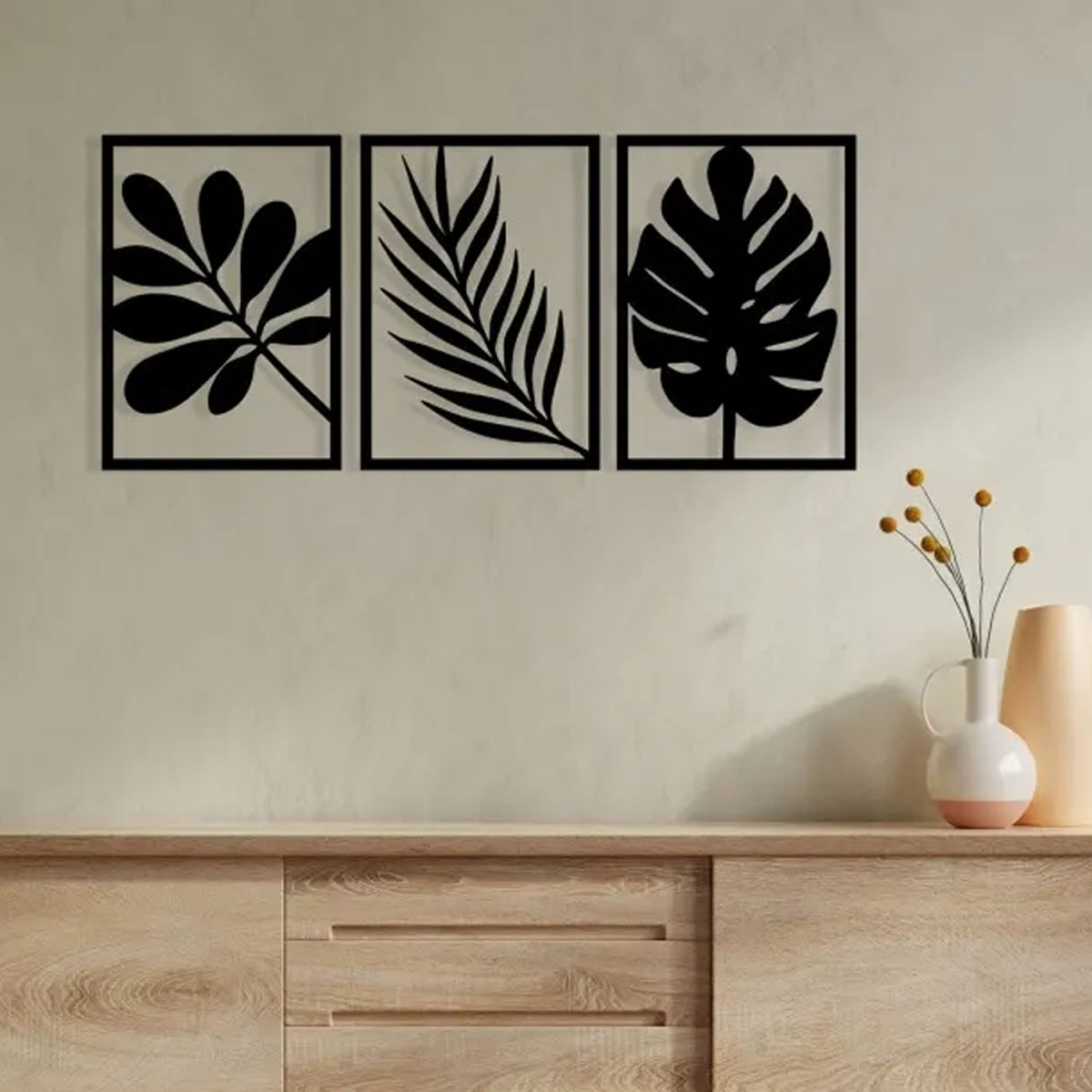 Διακοσμητικό τοίχου με tropical σχέδιο κατασκευασμένο από μέταλλο σε μαύρη απόχρωση. Τοποθετήστε σε έναν κενό τοίχο για να συμπληρώσετε μία μοντέρνα διακόσμηση στον χώρο σας.