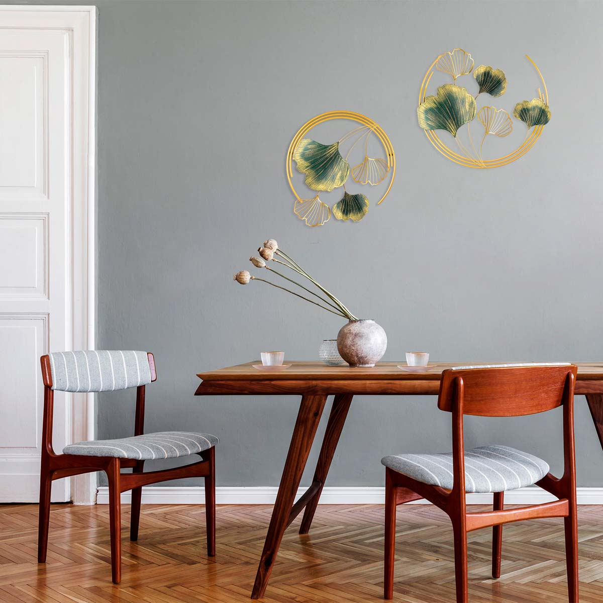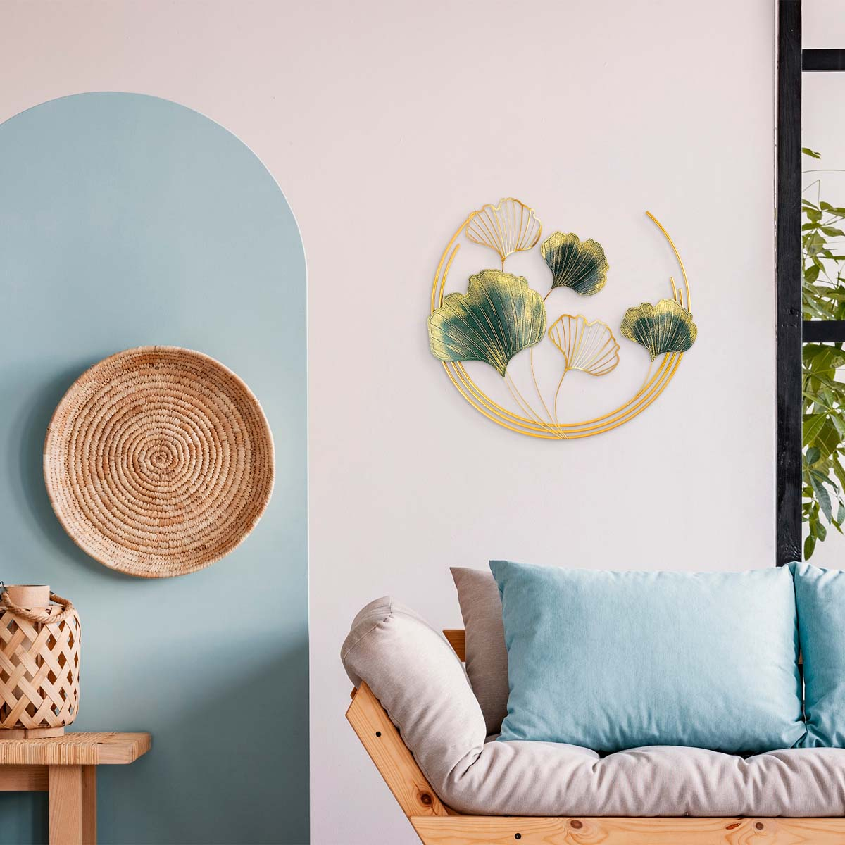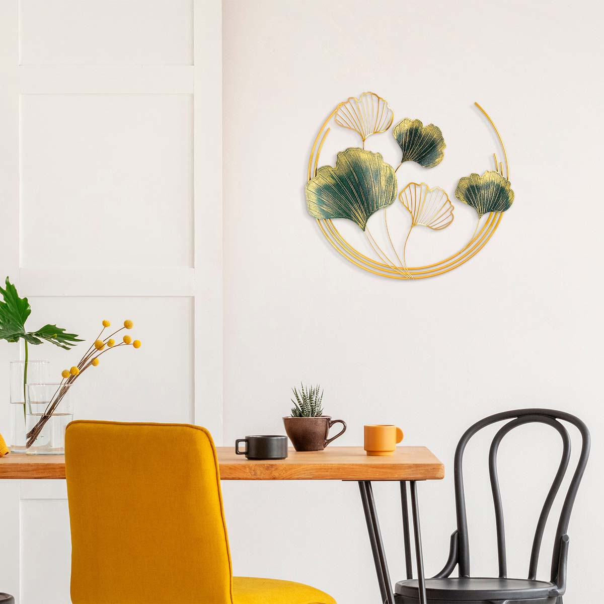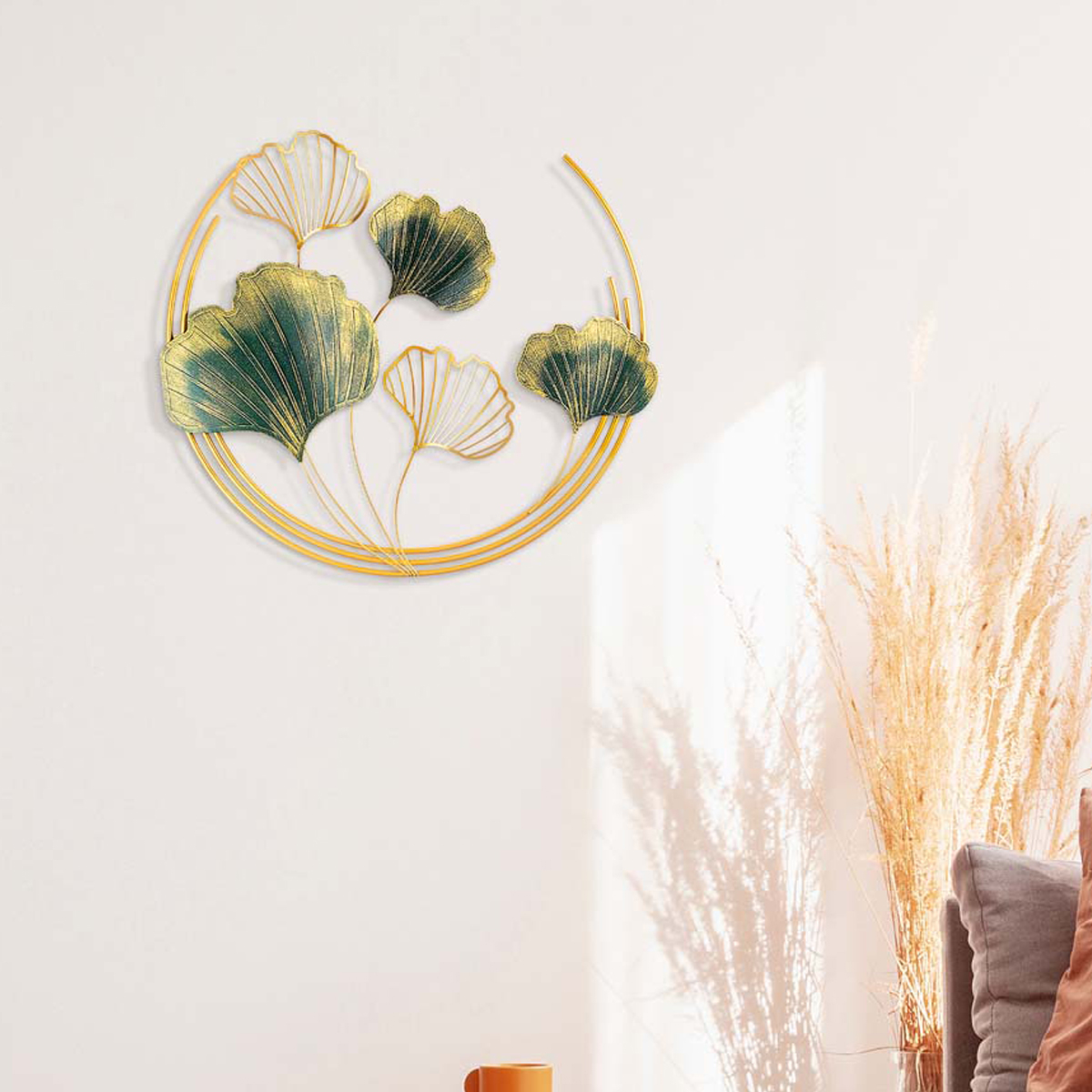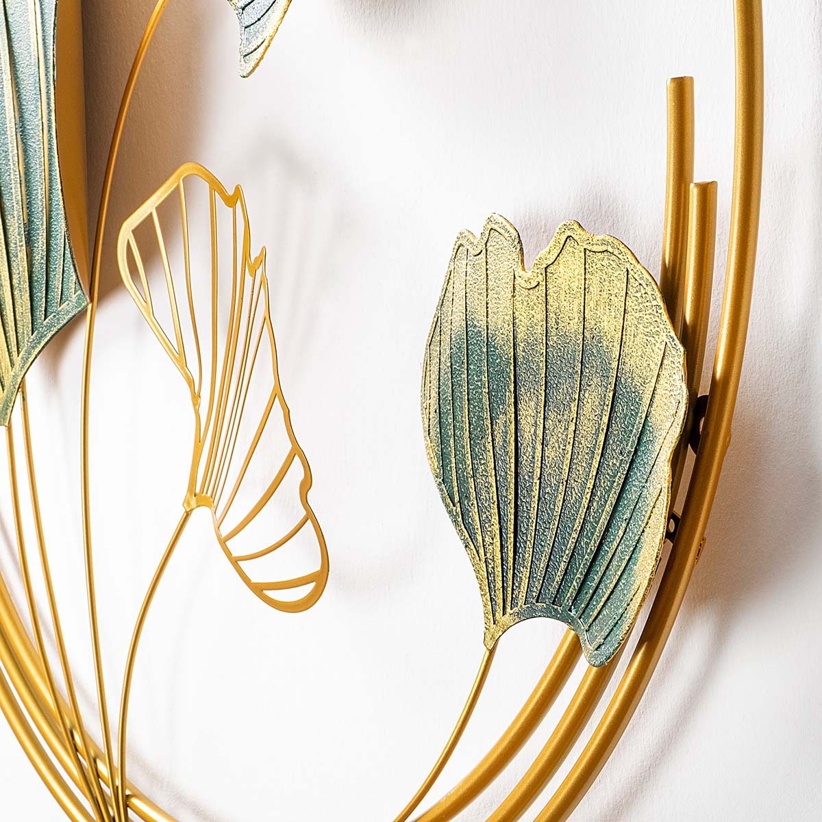 Διακοσμητικό τοίχου με φύλλα κατασκευασμένο από μέταλλο σε χρυσές και πράσινες αποχρώσεις. Τοποθετήστε το σε έναν κενό τοίχο για να συμπληρώσετε μία μοντέρνα διακόσμηση στον χώρο σας.