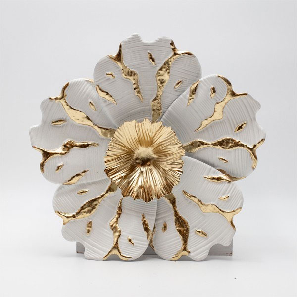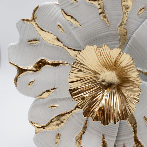 Διακοσμητικό τοίχου από την Estheti σε λευκό χρώμα με χρυσές λεπτομέρειες και λουλούδι στο σχέδιο. Είναι κατασκευασμένο από υψηλής ποιότητας μεταλλικό υλικό. Διακρίνεται για την ανθεκτικότητα και τη λεπτομερή κατασκευή του. Ιδανικό για να διακοσμήσει τους τοίχους του χώρου σας με φινέτσα και στυλ.