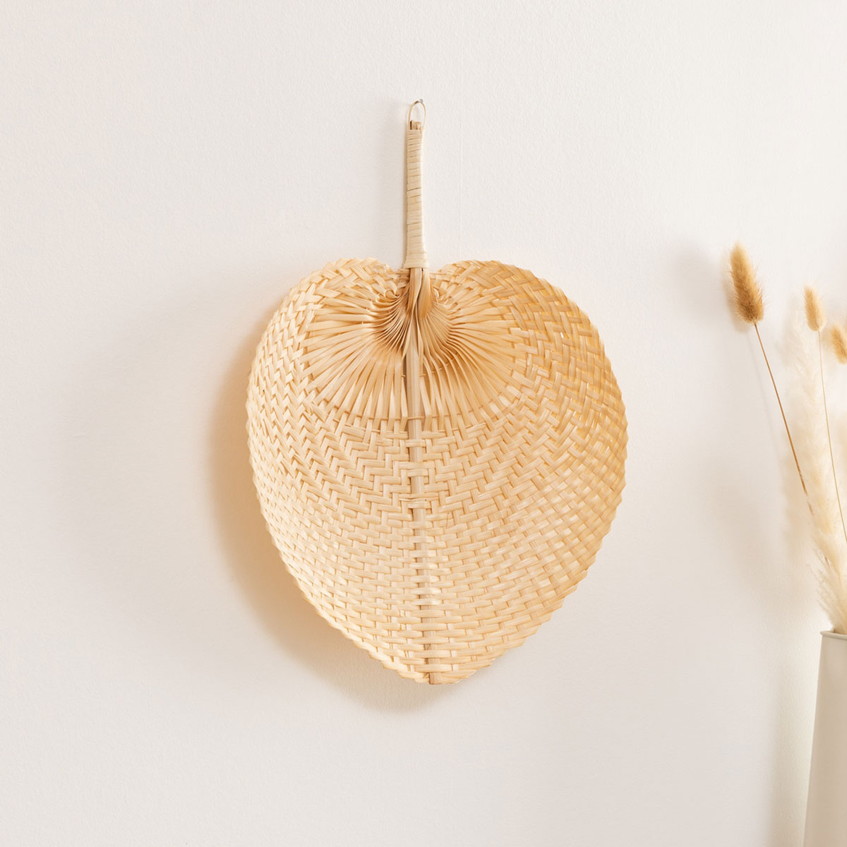 Διακοσμητική βεντάλια τοίχου σε φυσική μπεζ απόχρωση. Είναι ψάθινη, κατασκευασμένη από bamboo. Τοποθετήστε την σε έναν κενό τοίχο για να χαρίσετε μοναδικό χαρακτήρα στον χώρο σας.