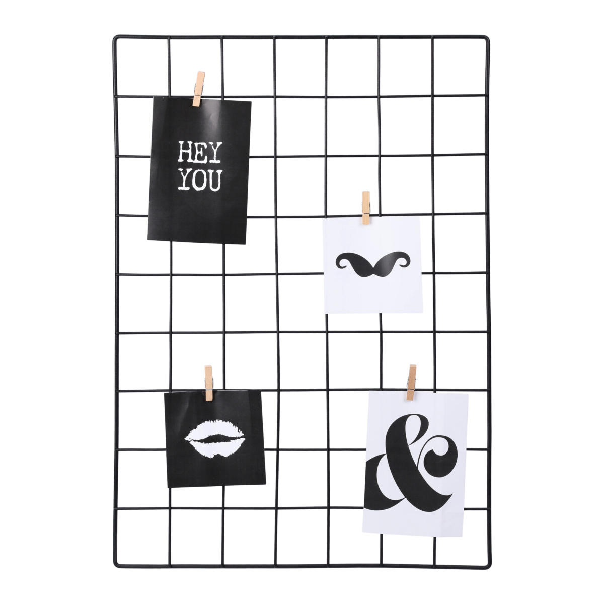 Διακοσμητικό τοίχου με μοντέρνο ύφος. Είναι κατασκευασμένο από μεταλλικό υλικό σε μαύρο χρώμα και έχει 4 ξύλινα μανταλάκια για να κρεμάτε τις φωτογραφίες ή τις σημειώσεις σας. Ιδανικό για να διακοσμήσει κάθε χώρο του σπιτιού σας και να μην χάνετε καμία φωτογραφία ή σημείωση.