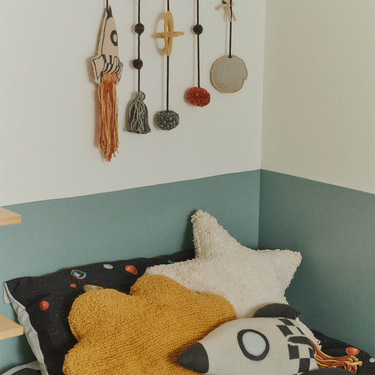 Διακοσμητικό τοίχου κρεμαστό, για το παιδικό ή βρεφικό δωμάτιο από την εταιρεία Lorena Canals. Κρεμιέται στον τοίχο και έχει θέμα το διάστημα. Είναι χειροποίητο, κατασκευασμένο από 70% βαμβάκι και 30% άλλες ίνες, χωρίς τοξικές βαφές. Το γέμισμα είναι από polyester. Το προϊόν πληροί όλες τις προδιαγραφές ποιότητας και ασφάλειας για παιδιά, ενώ έχει ISO 9001, ISO 14001 & ISO 18001.