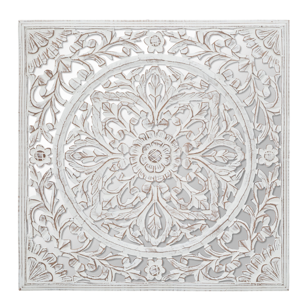 Διακοσμητικό τοίχου με διάτρητο σχέδιο και vintage ύφος. Είναι κατασκευασμένο από ξύλο MDF_E1 σε λευκό χρώμα. Ιδανικό για να τοποθετηθεί σε ένα τοίχο του σπιτιού σας και να τον διακοσμήσει. Συνδυάστε το με τα υπόλοιπα είδη της ίδιας συλλογής για ένα ολοκληρωμένο αποτέλεσμα στο χώρο σας.