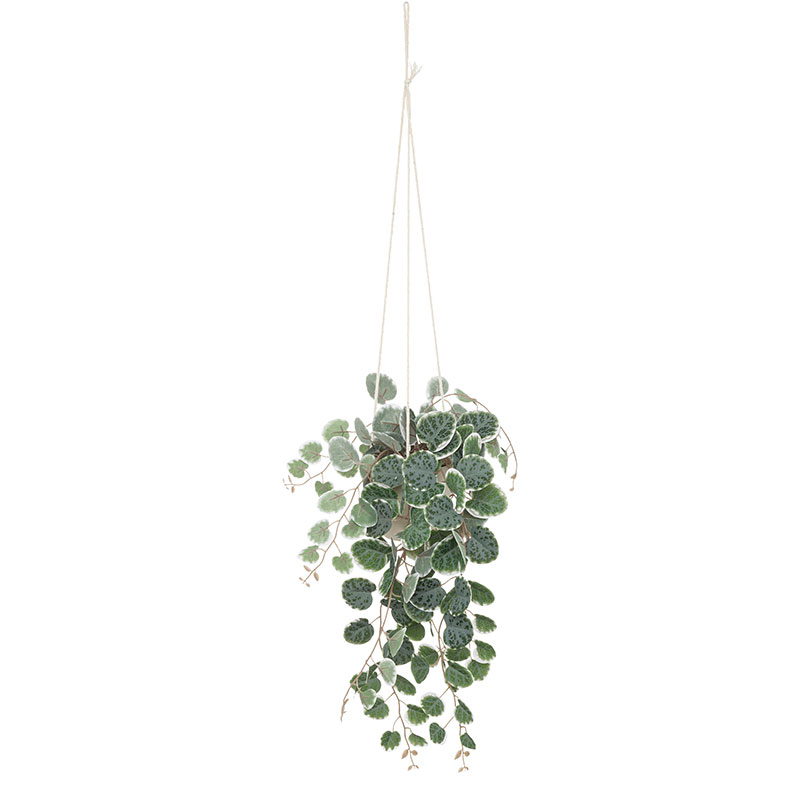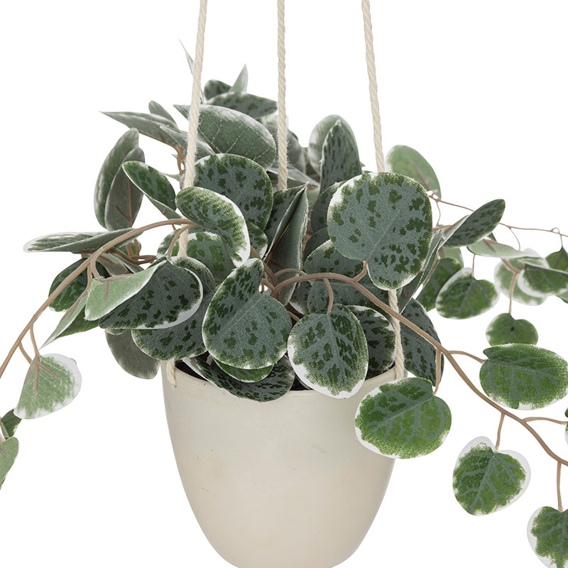Κρεμαστή διακοσμητική γλάστρα με τεχνητό φυτό. Η γλάστρα είναι κατασκευασμένη από τσιμέντο σε γκρι χρώμα ενώ το φυτό είναι πράσινο polyester. Διαθέτει βαμβακερά σχοινιά για να το κρεμάτε. Χρησιμοποιήστε τεχνητά φυτά για να διακοσμήσετε τους εσωτερικούς ή εξωτερικούς χώρου σας και να ανανεώσετε την αισθητική τους.